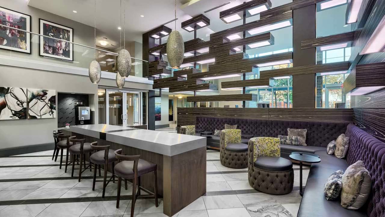 Elevated Resident Lounge with Demonstration Kitchen Overlooking Uber-Chic Swimming Pool with Tanning Ledge
