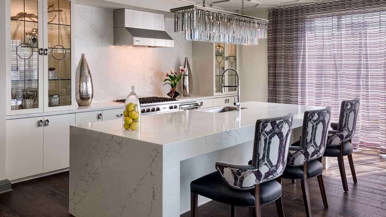 Custom Kitchen Island to Prep and Serve in With Waterfall Edge