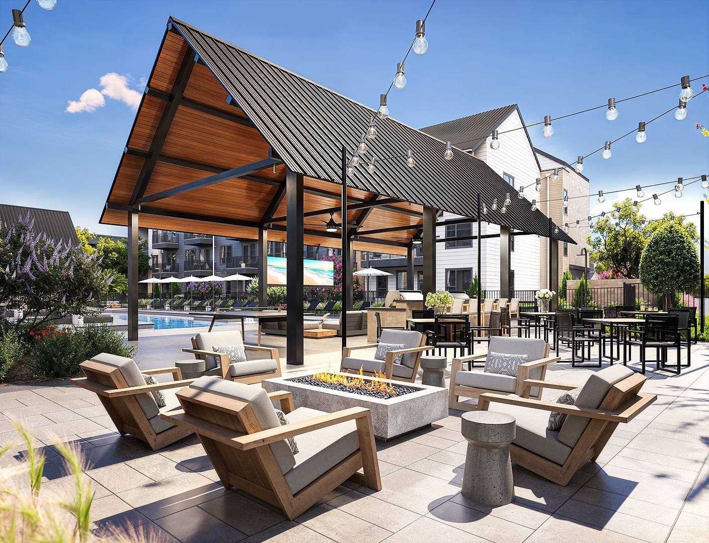 Outdoor Lounge with Shade Structure & Televisions