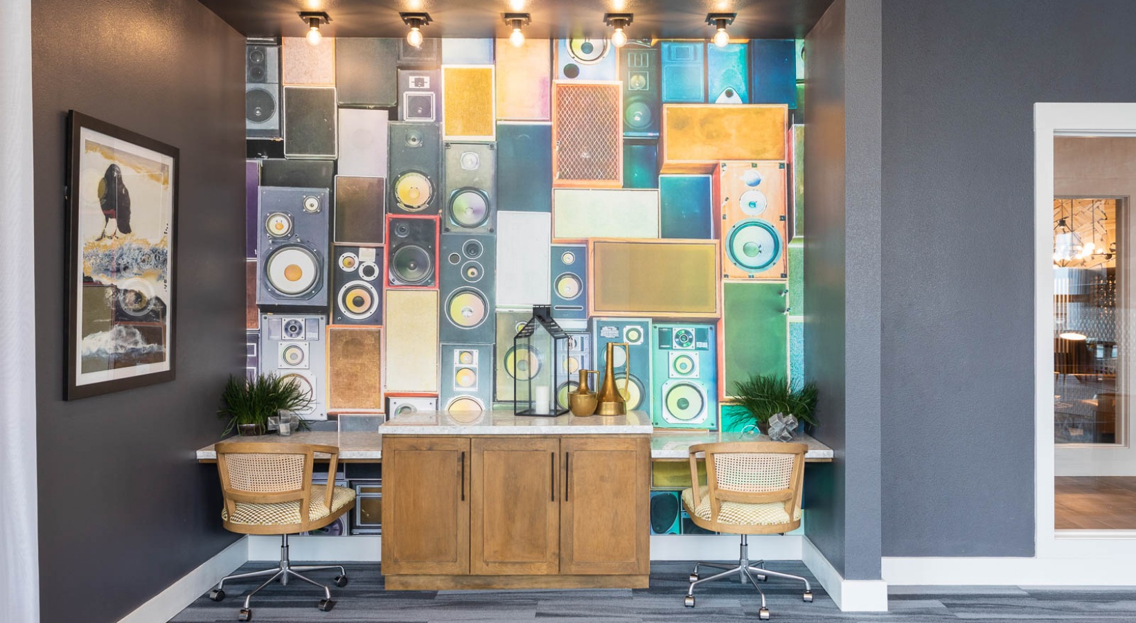 Coworking space w/ wi-fi, private meeting pods & pool views