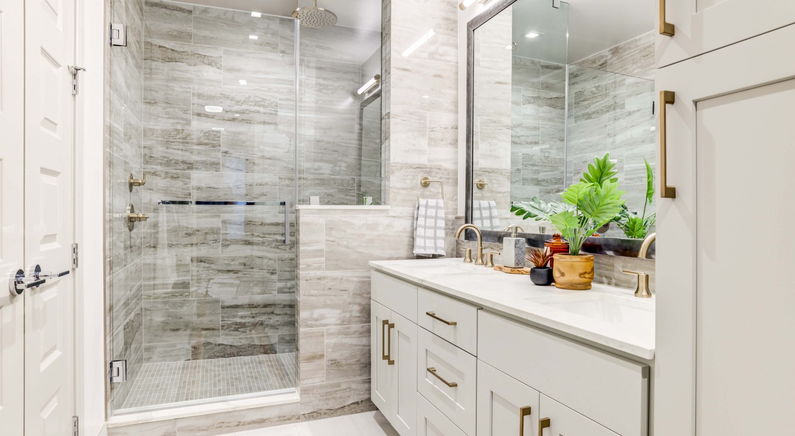 Elegant quartz countertops in kitchen and bathrooms