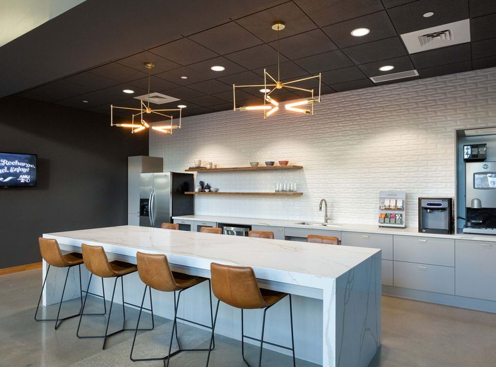 Breakfast bars with pendant lighting