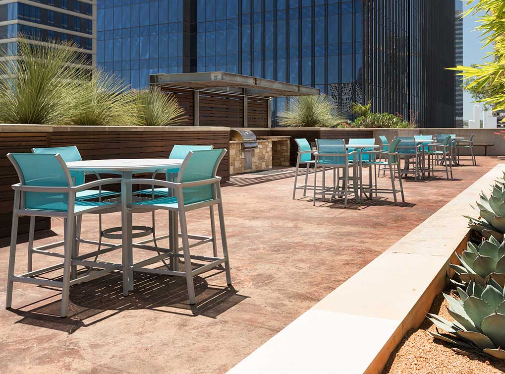 Gated private terraces with direct pool access
