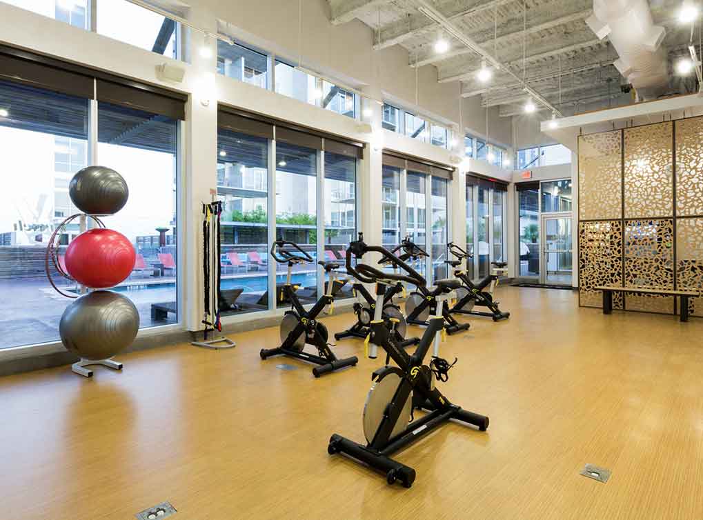 Spin room featuring fitness classes on demand