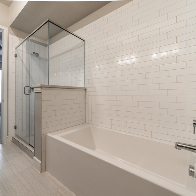 Deep soaking tubs with separate glass shower enclosure