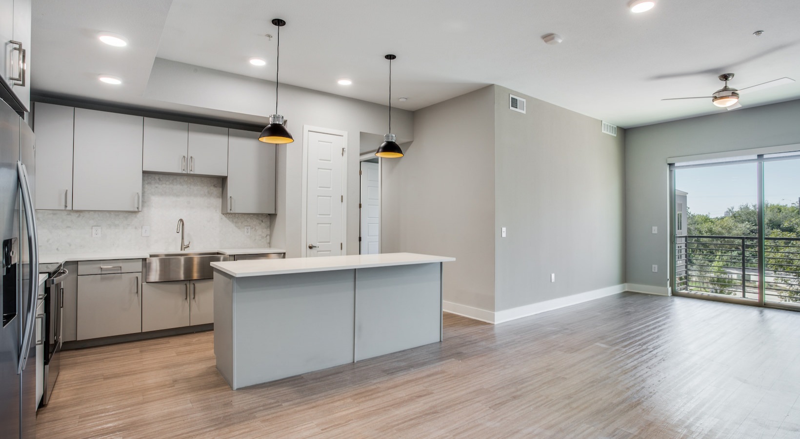 Wood-look flooring in kitchen, living room & bedrooms