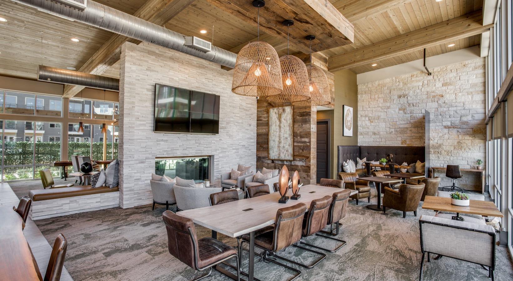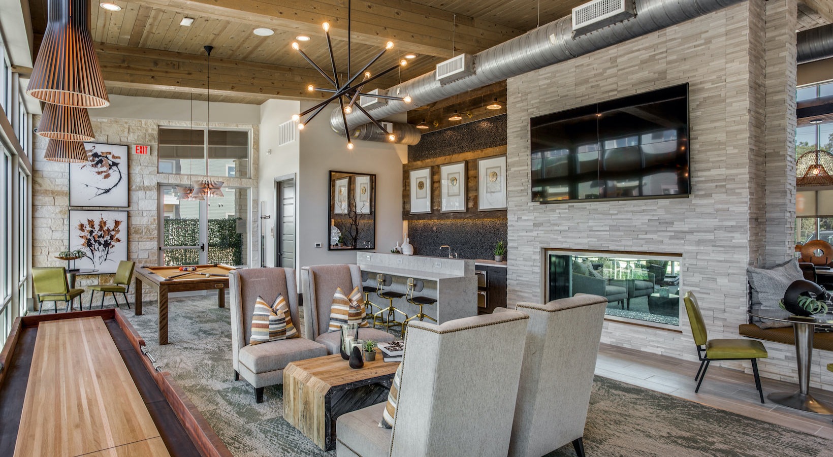 Expansive clubhouse with game area & fire place