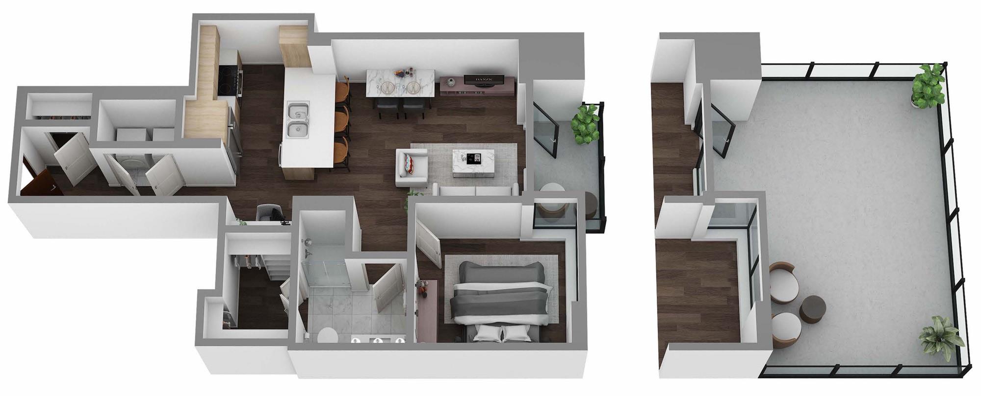 Private terraces offering both city and lake views *