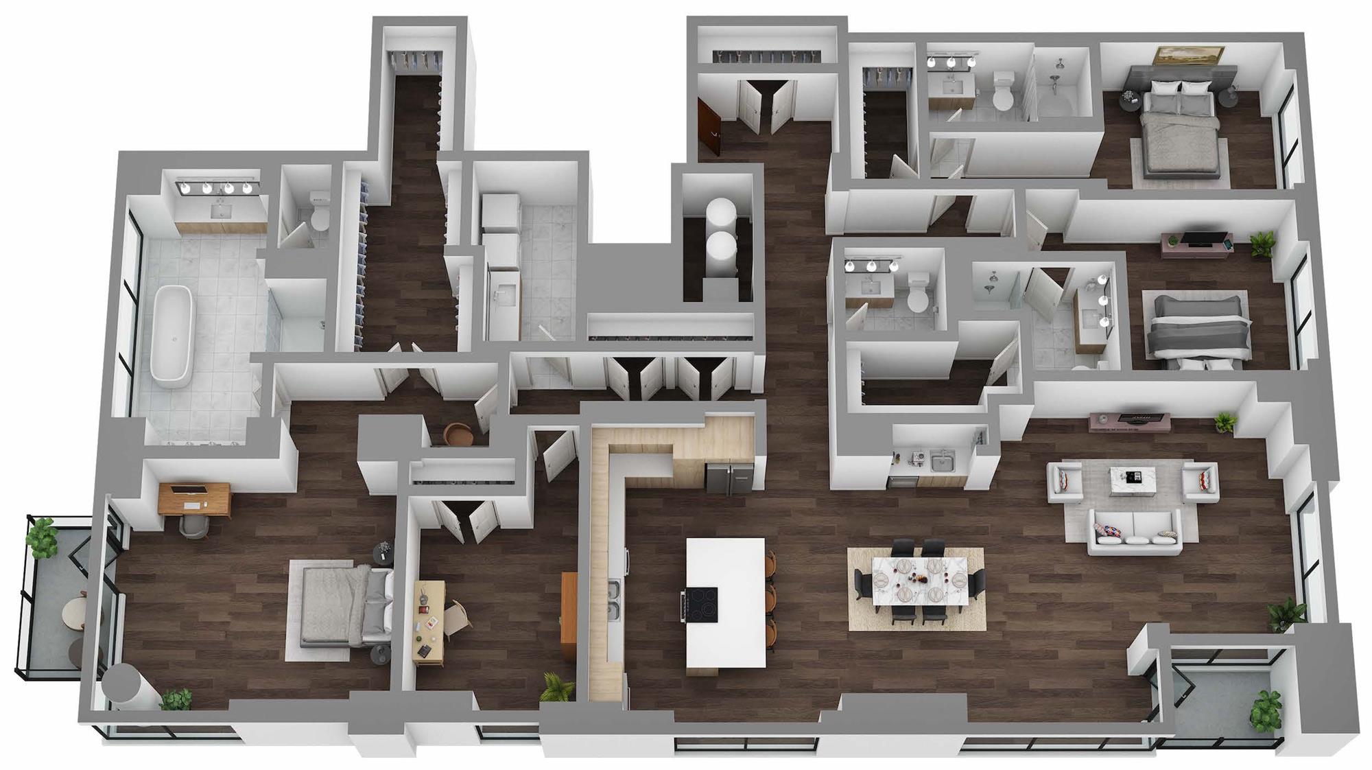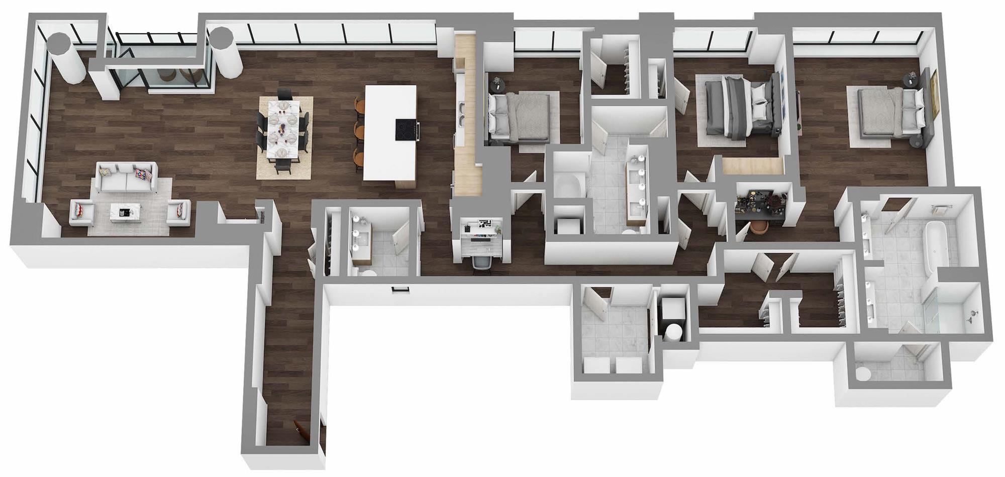 Three-bedroom penthouse residences with breathtaking views *
