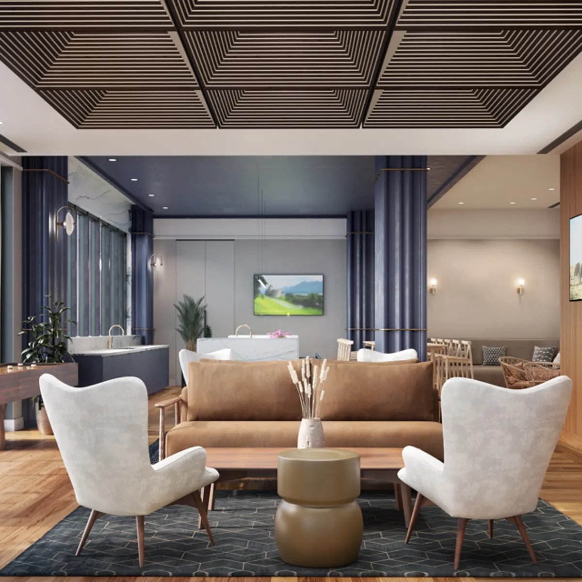 Penthouse lounge and library