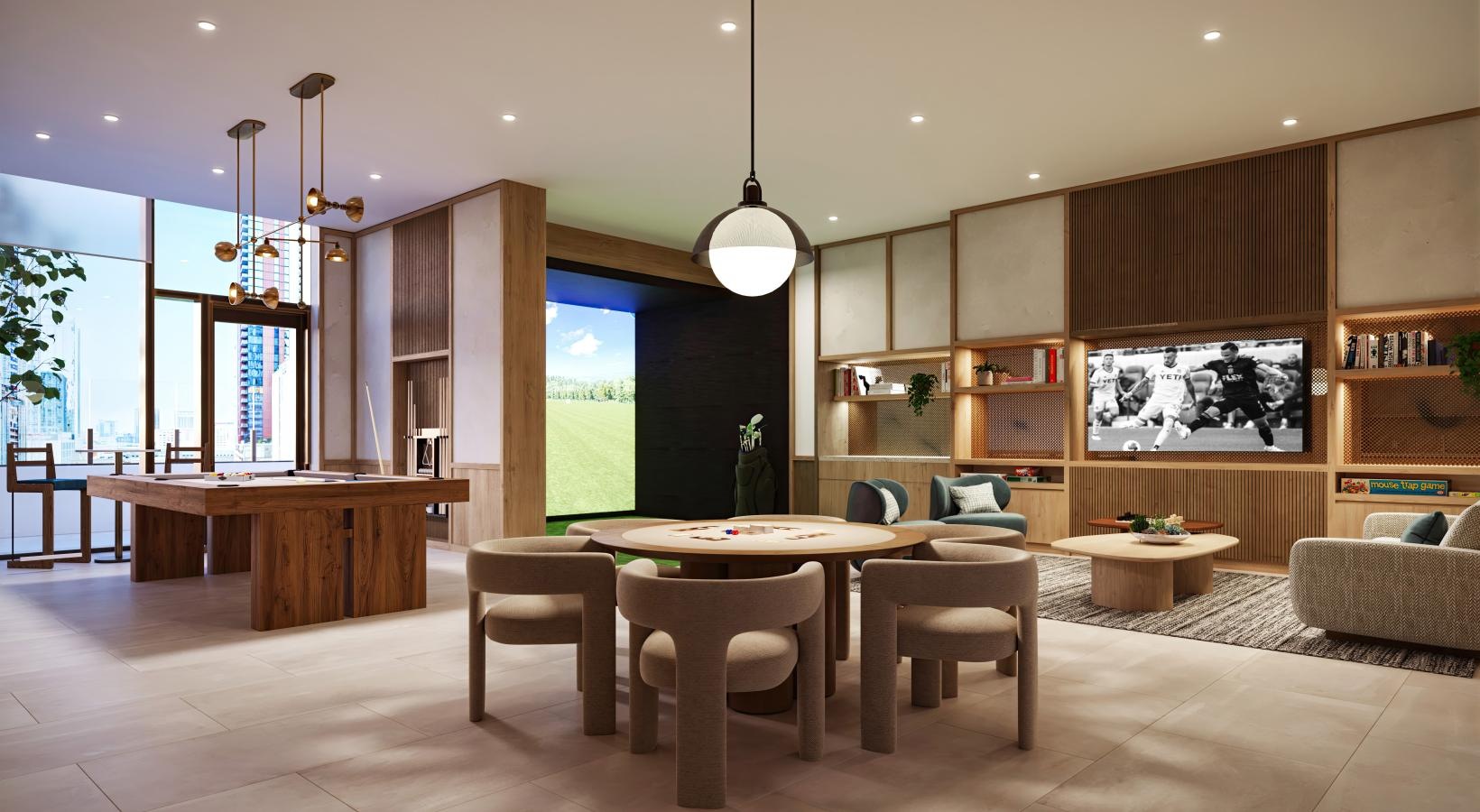 Game lounge with multisport simulator by Top Swing Golf