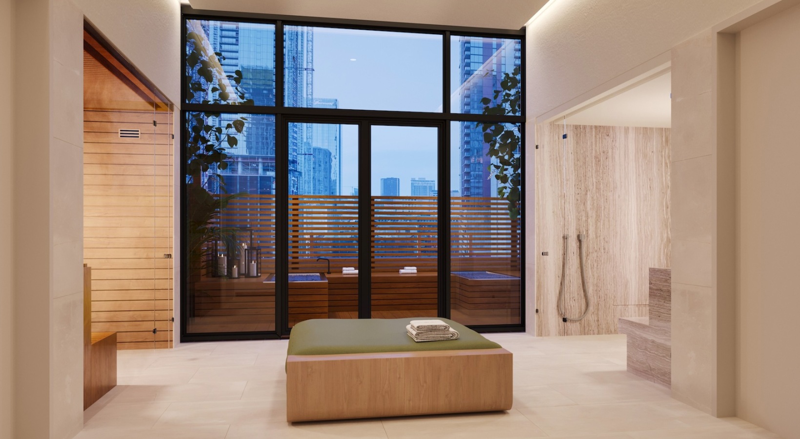 Steam, sauna, plunges, outdoor showers, & treatment rooms