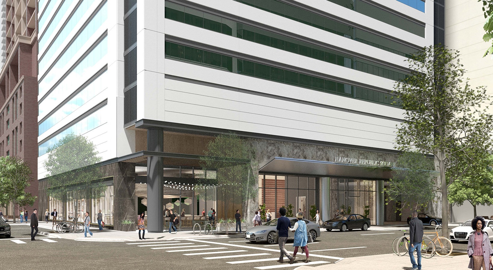 Rooftop lounge with indoor-outdoor bar and social areas
