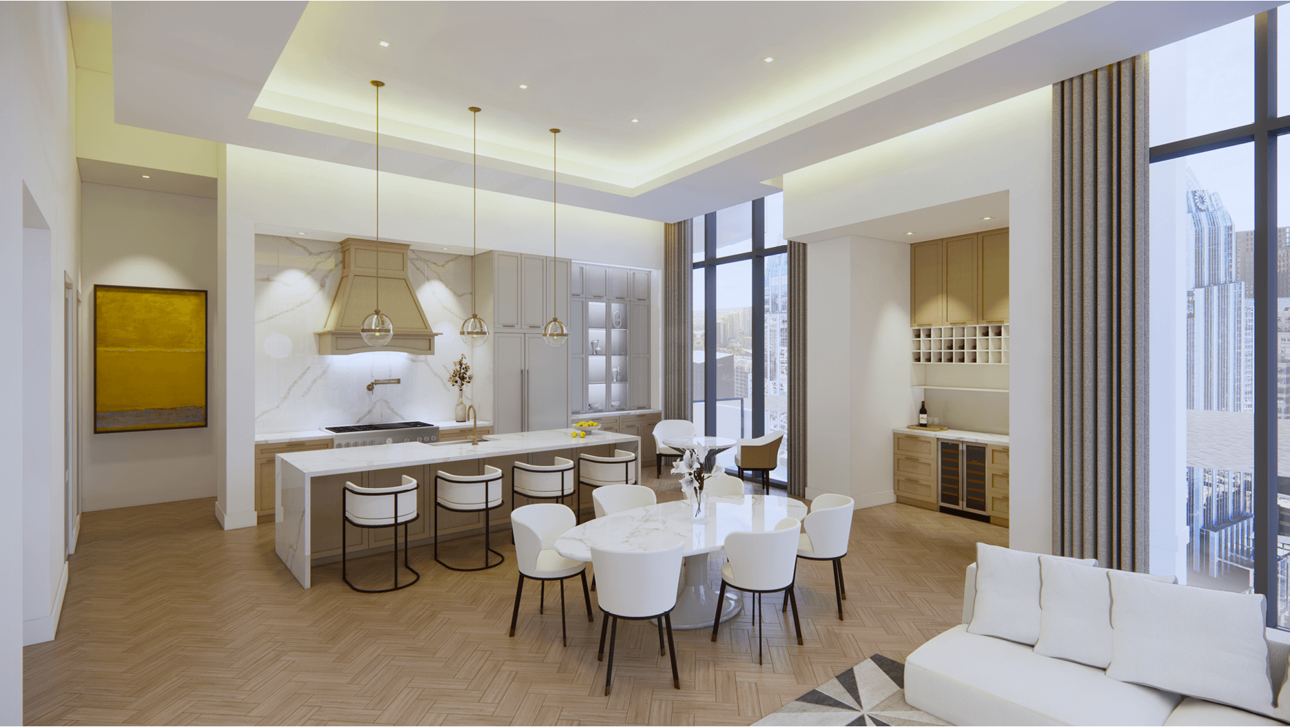 Sky lounge on the 46th floor with bar, terrace, lounge areas, and conference room