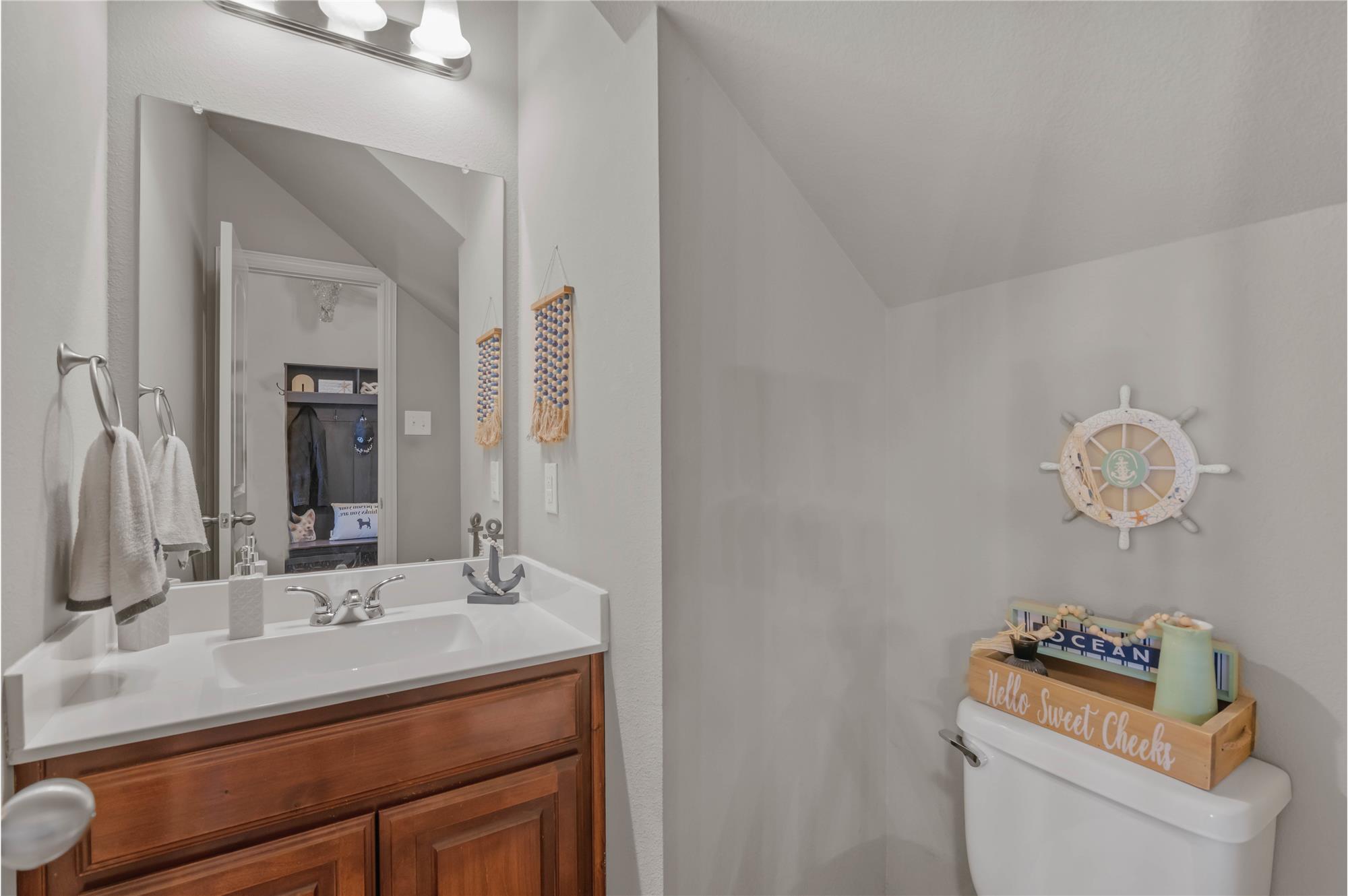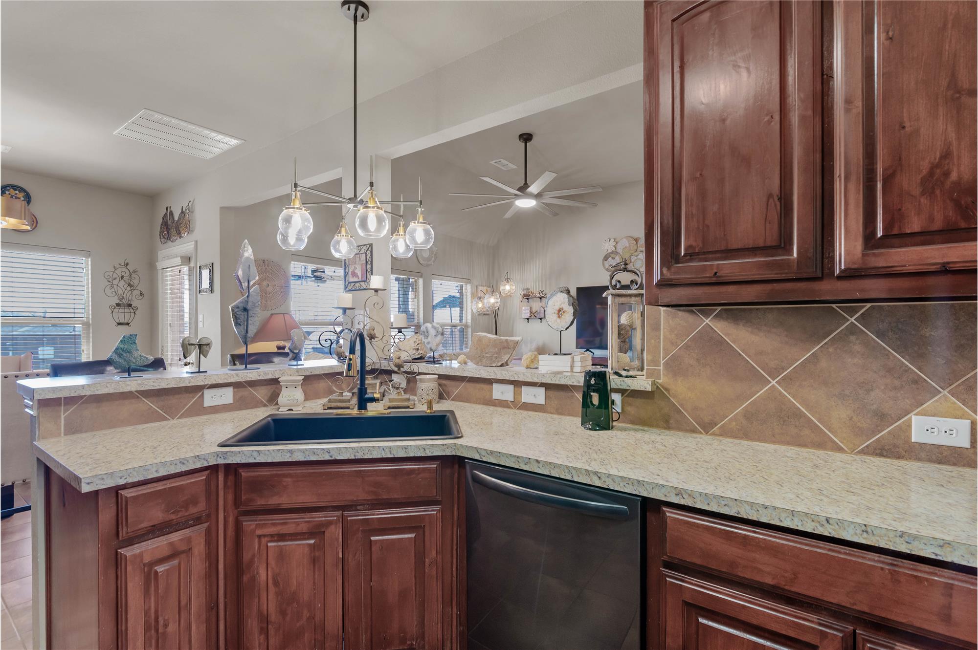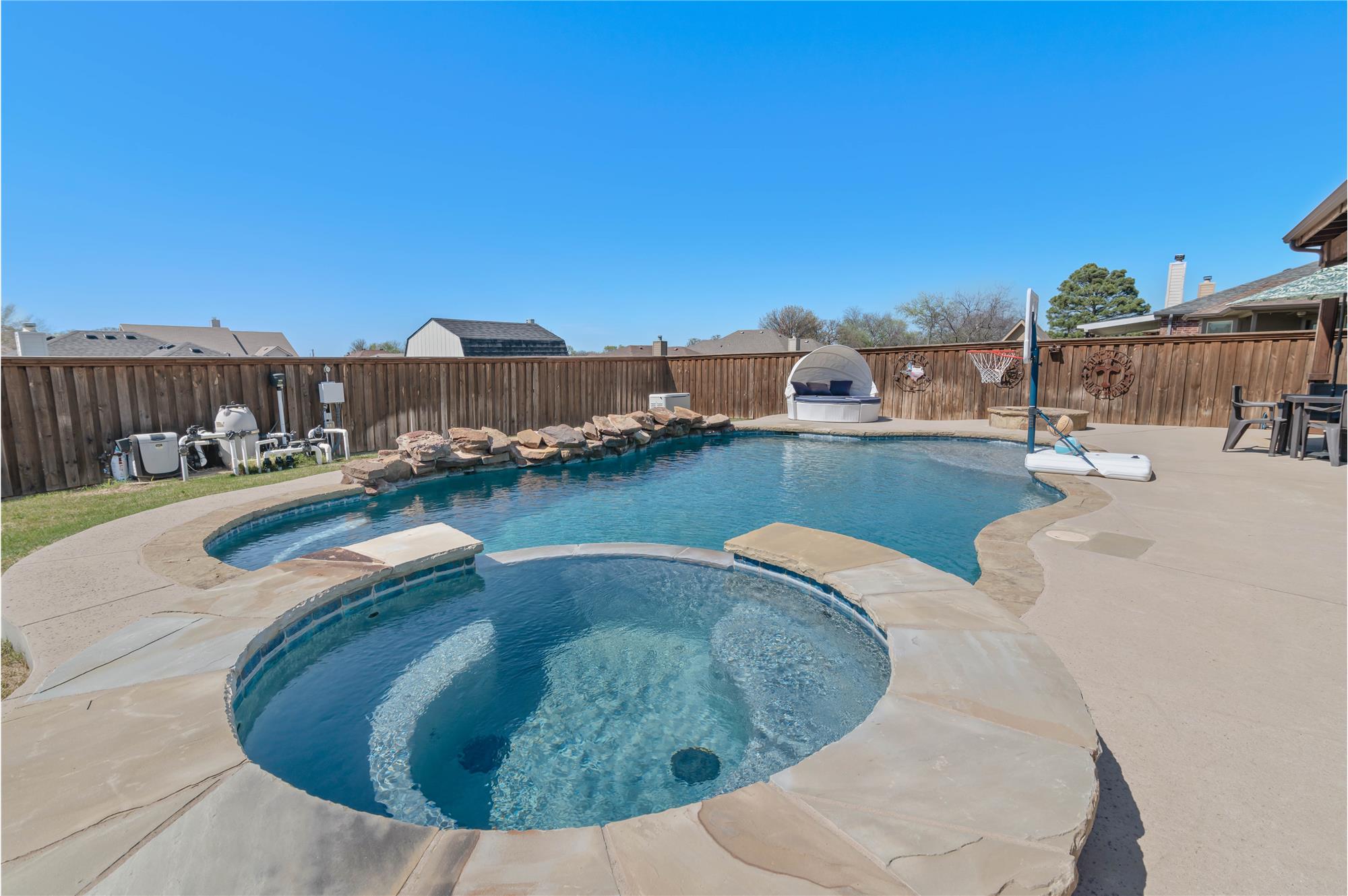 Resort-style backyard, no HOA, and a cul-de-sac location — this one delivers on every level. Tucked on a quiet street in Glen Oaks of Aubrey, this well-maintained 3-bedroom, 2.5-bath traditional brick home offers 2,060 sq ft of thoughtfully designed living space with the primary suite downstairs and exceptional outdoor living rarely found at this price point. Inside, the main level features luxury vinyl plank flooring and easy-care tile throughout — no carpet downstairs. The open layout flows from a large living room with views over the pool, into a generous kitchen nook and separate formal dining room. Upstairs you'll find two additional bedrooms, a full bath, and a large bonus room. The primary suite is a true retreat on the main floor with an en-suite bath featuring dual sinks, garden tub, and separate shower. Step outside to a resort-style freeform pool with attached spa and natural stone waterfall, stamped concrete surround, and a fully equipped outdoor kitchen area under a large covered patio with wood beam ceiling, ceiling fan, and string lights. Updated board-on-board privacy fence completes the outdoor space. Water heater is 1 year old and new roof in 2022! Zoned to Aubrey ISD. Minutes from Hwy 380 with quick access to Denton, Frisco, and the North Dallas Tollway. No HOA. Schedule your showing today!