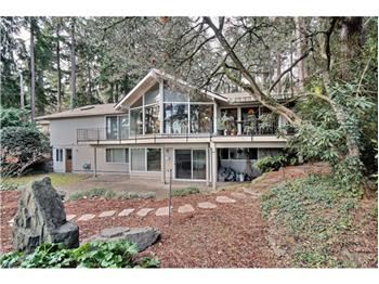 Upon entering this secluded oasis overlooking Lake Washington,one discovers a polished slate entryway,hardwood floors and lush carpets. Oversized windows highlight sweeping lake views.This home also features two fireplaces and ample storage.The newly remodeled kitchen features new convect microwave/oven combo, a Sub-Zero refrigerator, granite counters and a stainless double bowl sink, bringing prominence to this contemporary home. Secluded setting and shared beach access between three homes.