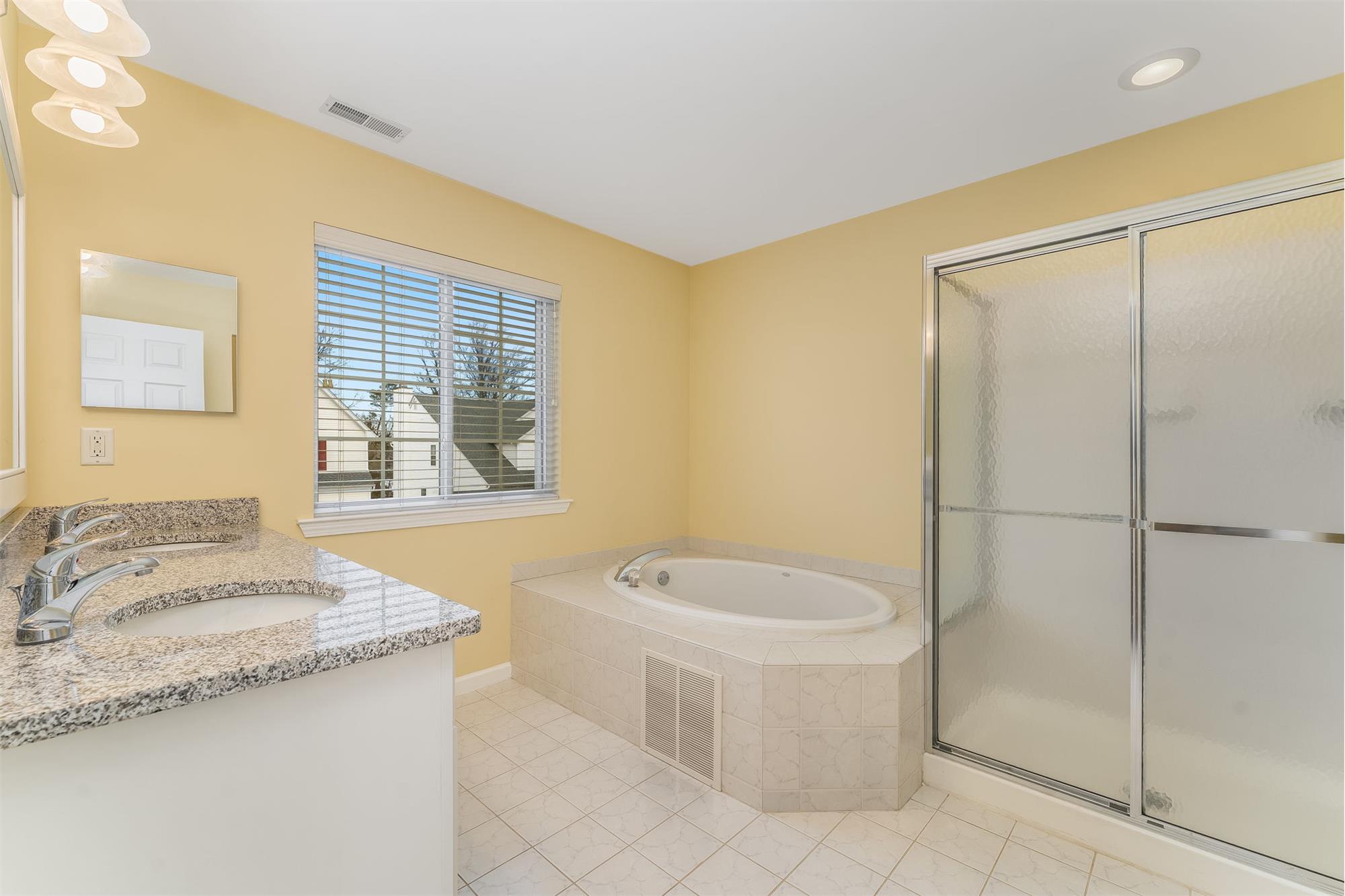 Welcome to a beautifully renovated, east-facing modern colonial home with many special features and upgrades. The entry foyer and spacious living room are graced with pristine hardwood flooring, and the staircase treads/landing are high-quality solid oak. With stainless steel appliances, maple cabinets, under-cabinet lighting, granite counters, and a full pantry, the sparkling renovated kitchen connects to a generous breakfast area with elegant plantation shutters, leading out to the peaceful, shady patio and back yard. An attractive, level yard backs to Shields Lane park & playground. The front walk, entrance, patio, and back steps are upgraded with pavers and custom flagstone. This home features a highly-desirable open layout between kitchen and family room, providing a seamless flow for entertaining and everyday living. The stunning two-story family room, with gorgeous wood flooring, offers a comfortable space for relaxation with its cozy gas fireplace. Laundry/mud room is conveniently located on the main level. Upstairs, there are four bedrooms, all with wood flooring, and two full bathrooms with granite counters. Primary suite has twin walk-in closets, leading to a large ensuite bathroom with double sinks, luxurious corner soaking tub, and separate shower stall. Full finished basement offers an expansive open room which can be used as a large recreational space, or customized to include areas for gaming, exercise, or hobbies, with adjacent storage. This versatile lower level is enhanced by custom wood built-in bookcases and column covers. Two-zone HVAC, sprinkler system and hard-wired security system. Entire home recently painted, including the garage. Don't miss this exceptionally well-maintained, updated home in a fantastic neighborhood!