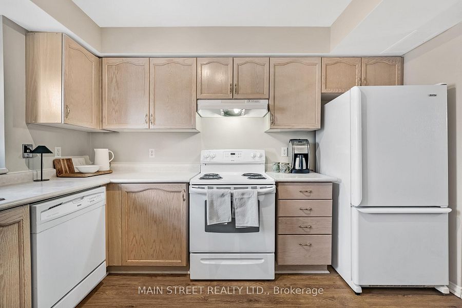 Welcome to this stunning move-in-ready end-unit townhome in the heart of Stouffville's vibrant and charming community! #111 is one of the few homes in the desirable Stouffville Mews complex offering a rare and highly sought-after combination of: ground-level living, private fully fenced backyard, no neighbours above, and an exclusive parking space conveniently located right at your front door. Enter directly into the main level featuring a spacious kitchen with ample storage, an open-concept living and dining room sharing a cozy gas fireplace, and a walk-out directly to the rare fully fenced private backyard (BBQs permitted)! Upstairs, the benefits of this 2-storey end unit continue in the generously sized primary bedroom, boasting unobstructed west/north-facing windows that flood the space with natural light, along with double closets. The second level also offers a bright and spacious 2nd bedroom, a modern 4-piece bathroom w/ upgraded vanity and vinyl flooring, and a conveniently located stacked washer/dryer tucked neatly into a closet. Additional highlights include stylish and durable vinyl plank flooring throughout, smooth ceilings on the main floor, plush carpeting on the stairs, recently replaced windows/roof (within the past 5-7 years), and a newly installed front door. Stouffville Mews is a well-maintained, low-maintenance community! Monthly fees include water, landscaping, snow removal of walkways and common areas (owners are responsible to clear their own parking spaces), garbage disposal, property management, building insurance, and all exterior maintenance and repairs-including windows, roof, and doors. Pets are permitted (subject to municipal bylaws), and visitor parking is available for guests. Situated in a truly prime location steps from Stouffville's flourishing downtown, this home offers unmatched walkability to the Stouffville GO Station, excellent restaurants/shops, nearby public/catholic schools, S, parks, tennis courts, trails & public transit!