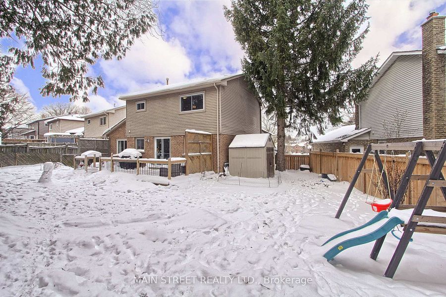 Fantastic Family Home, Well Maintained, Quiet Cres location, Pie Shaped Lot. Fully fenced back yard (south exposure) with walkout to deck from kitchen and family room. This home boasts Hardwood floors (2020) in Living and Dining room, Kitchen, family room and staircase to top floor. Crown molding and bay window in LR along with colonial French Doors. Separate mudroom with entrance to side yard. Hardwood in front foyer with a 2pc powder room. Separate dining room over looks rear yard and kitchen. Fabulous kitchen with built in appliances, corner cabinets, quartz counter tops, pot lights, under cabinet lighting and center island. Main floor Family room has crown molding and a fireplace*. Primary Bedroom has Hardwd floors, dbl closets, 4 pc ensuite bath & built in shelving. Good size second floor bedrooms have hardwood floors and face the front yard. Finished basement with closet and separate laundry room. Exercise room in bsmt with mirror wall, Kids playroom (or future bdrm) 3pc bath in bsmt. Storage room under stairs. Home also has water softner (owned), water heater (Rental $32/mth), osmosis water filter, central air and central vac. This Home is a pleasure to show!