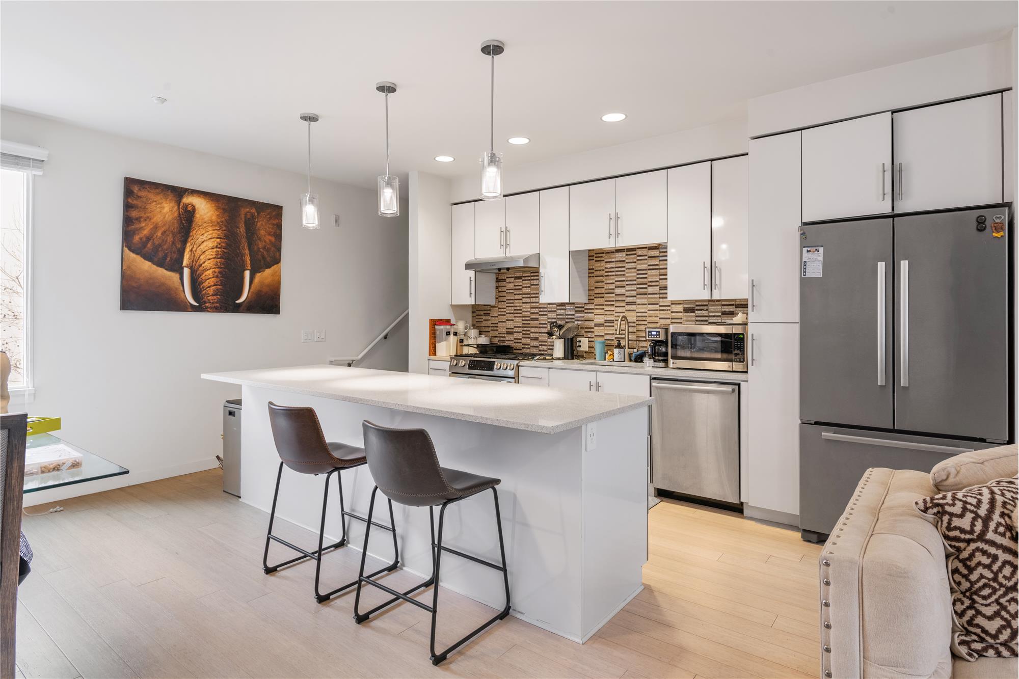 Modern Living, Perfected ... and then some. This must-see, stylish townhome delivers elevated design with a playful edge. With no neighbors above or below, this home lives like a private retreat and includes the rare luxury of an attached, side-by-side two-car garage.