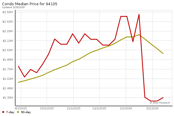The chart below shows the combined 7 days and 90 days median price trends for zip code