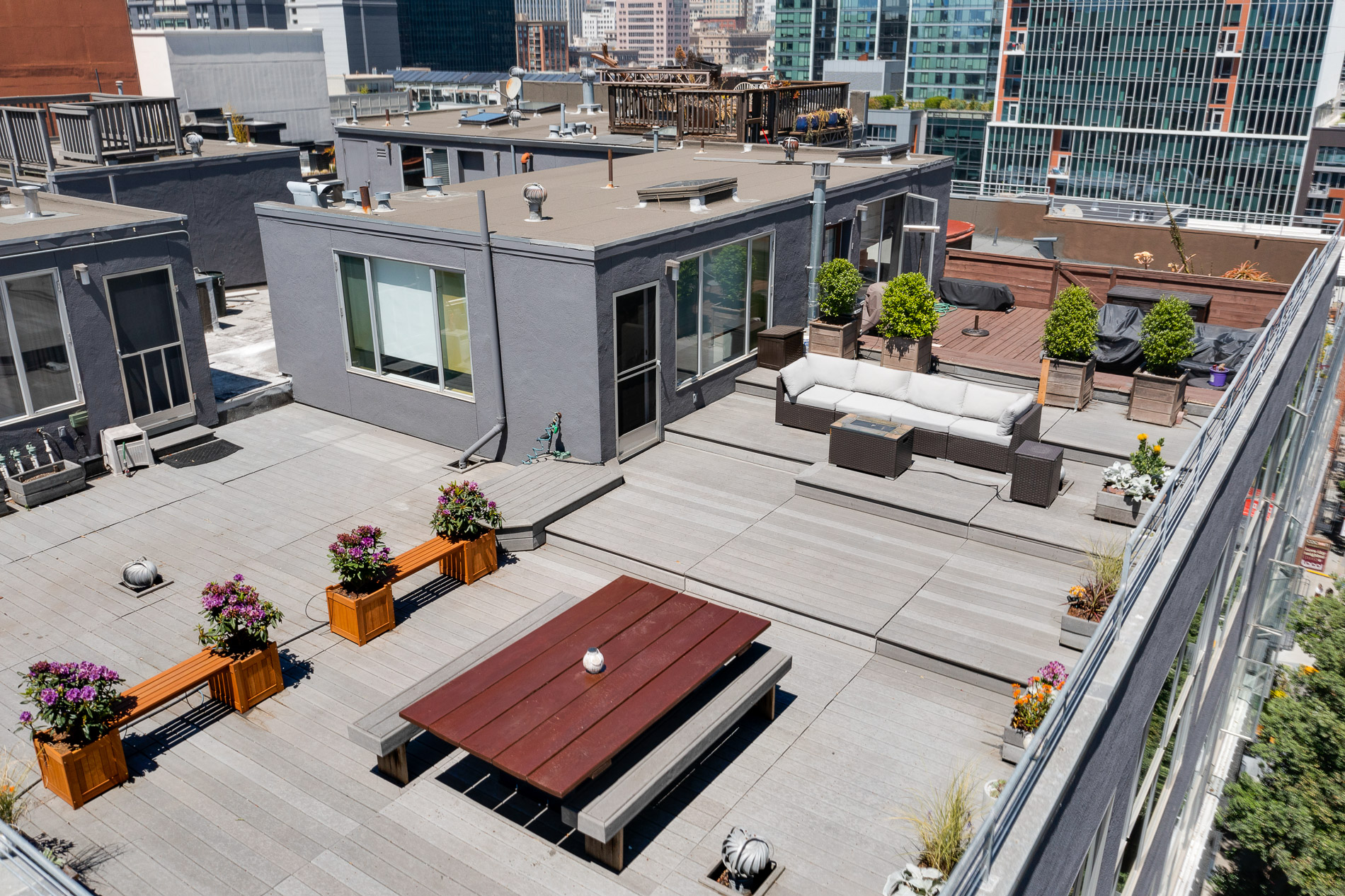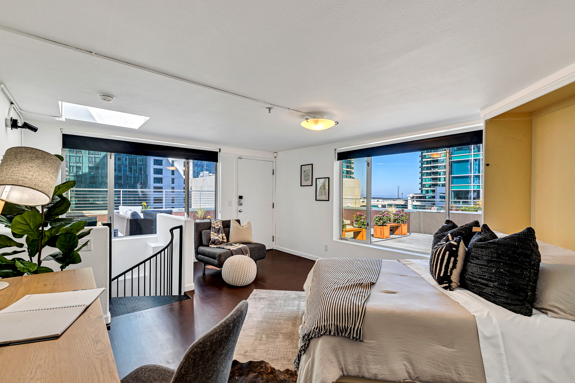 TOP LEVEL: A flexible third level serves as a second bedroom (complete with its own Murphy bed) or an executive office. From here, step directly onto the spectacular private rooftop deck - an exclusive retreat with panoramic city views, perfect for sunset gatherings or quiet mornings above it all. Additional highlights include in-unit laundry and 2-car garage parking.
