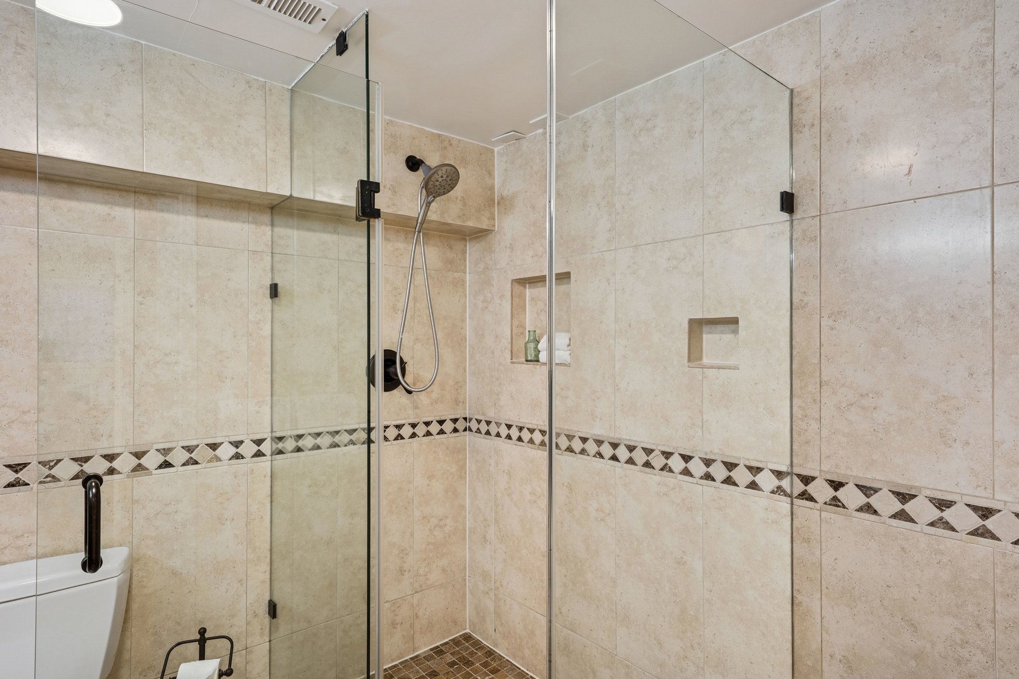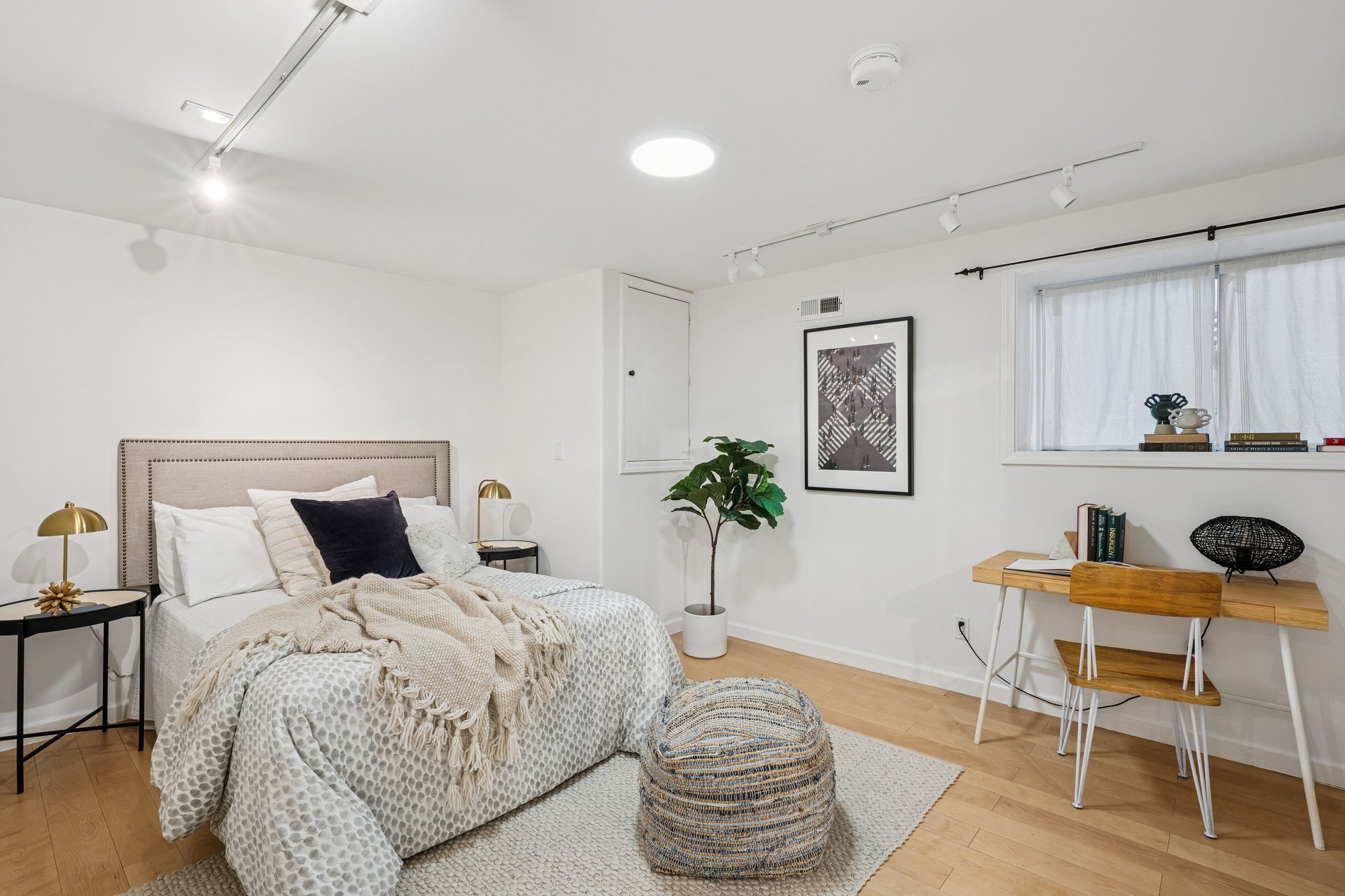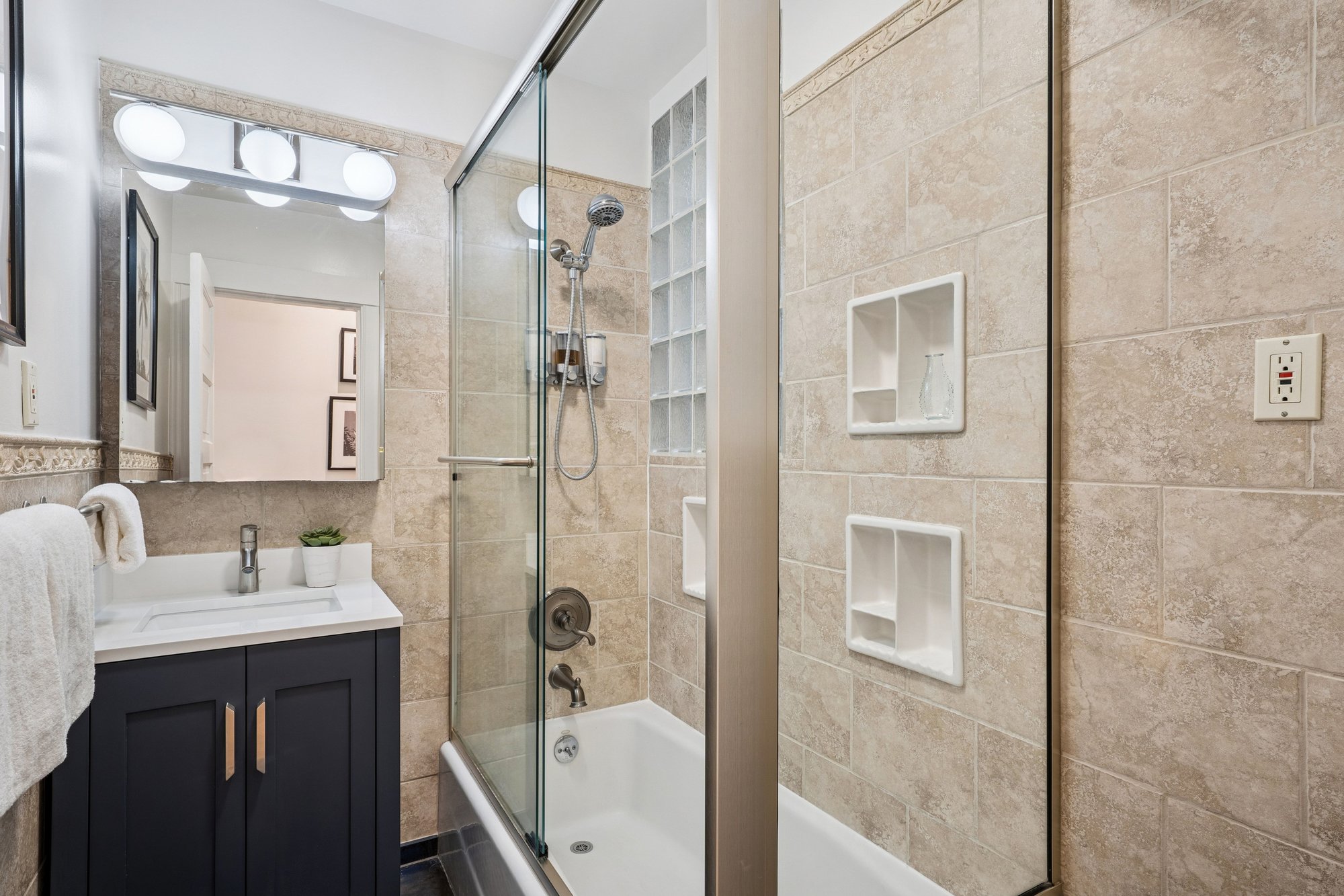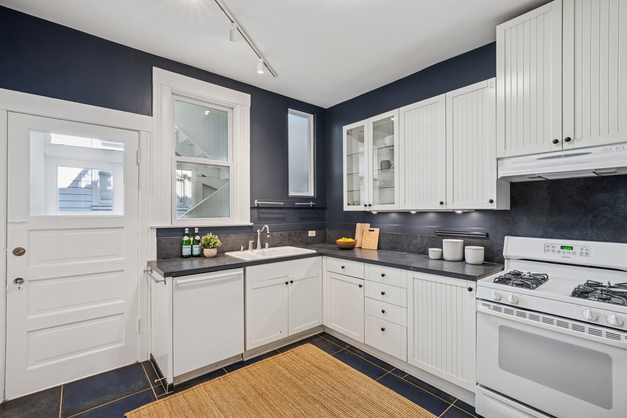 The main level offers two bedrooms and an updated split full bath, along with a spacious family room that opens to a large walk-out sun deck - ideal for indoor-outdoor living. The adjoining modern kitchen features abundant cabinetry and stone tile floors, blending function with style. Common area interior stairs connect to the lower level, where you’ll find a third bedroom, a second updated bath, media room, and storage. With its own separate entrance on Clover Street and washer/dryer hook-ups (in addition to the main-level in-unit laundry), this level offers exceptional versatility - perfect for extended family, guests, roommates, or flexible work-from-home living.