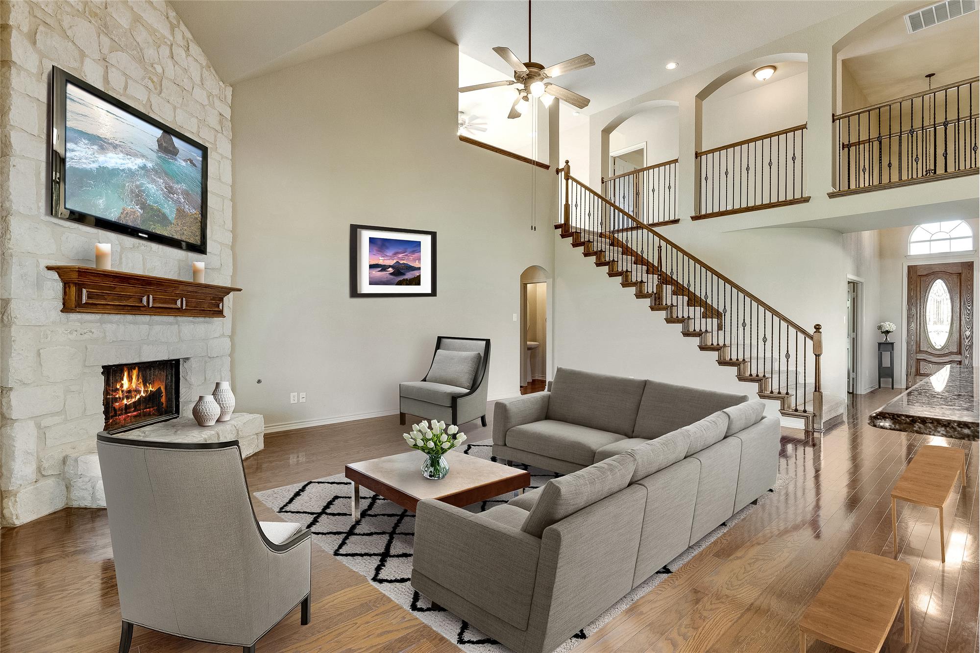 Spacious First Texas home, barely lived in on almost a half an acre lot in the well sought out Sendera Ranch neighborhood in Northwest ISD. House features wood floors throughout the downstairs, formal dining, and living, granite in kitchen with kitchen island, master down and four bedrooms up, Game room and media room. Freshly painted inside and out. Move in ready!