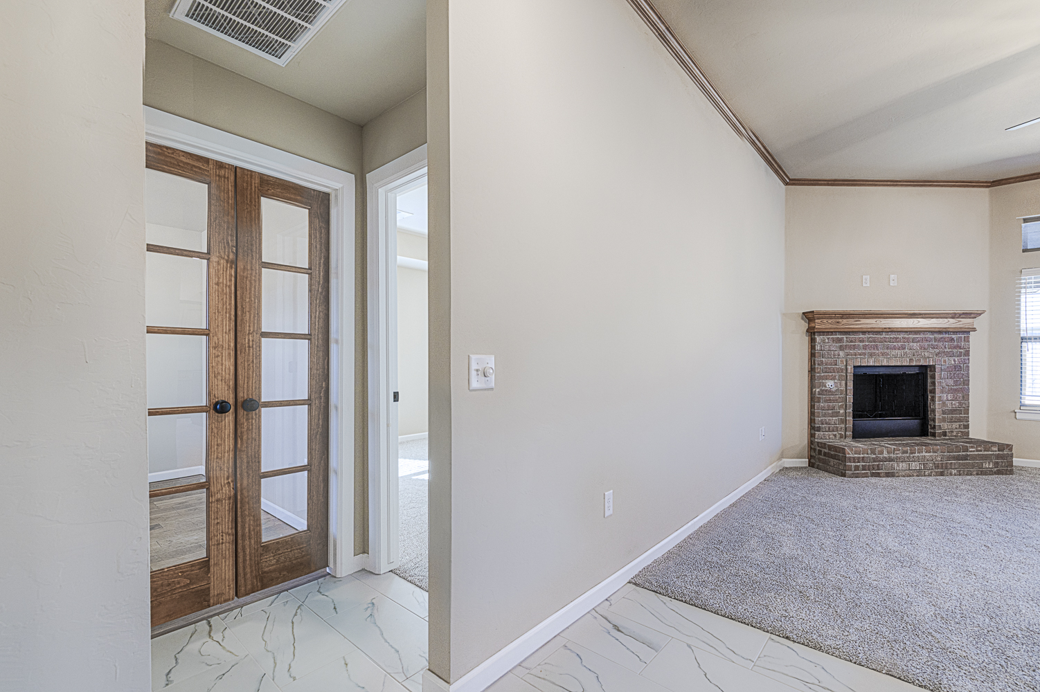 The 4th bedroom with French doors and wood floors offers flexible use as a home office, guest room, or study.