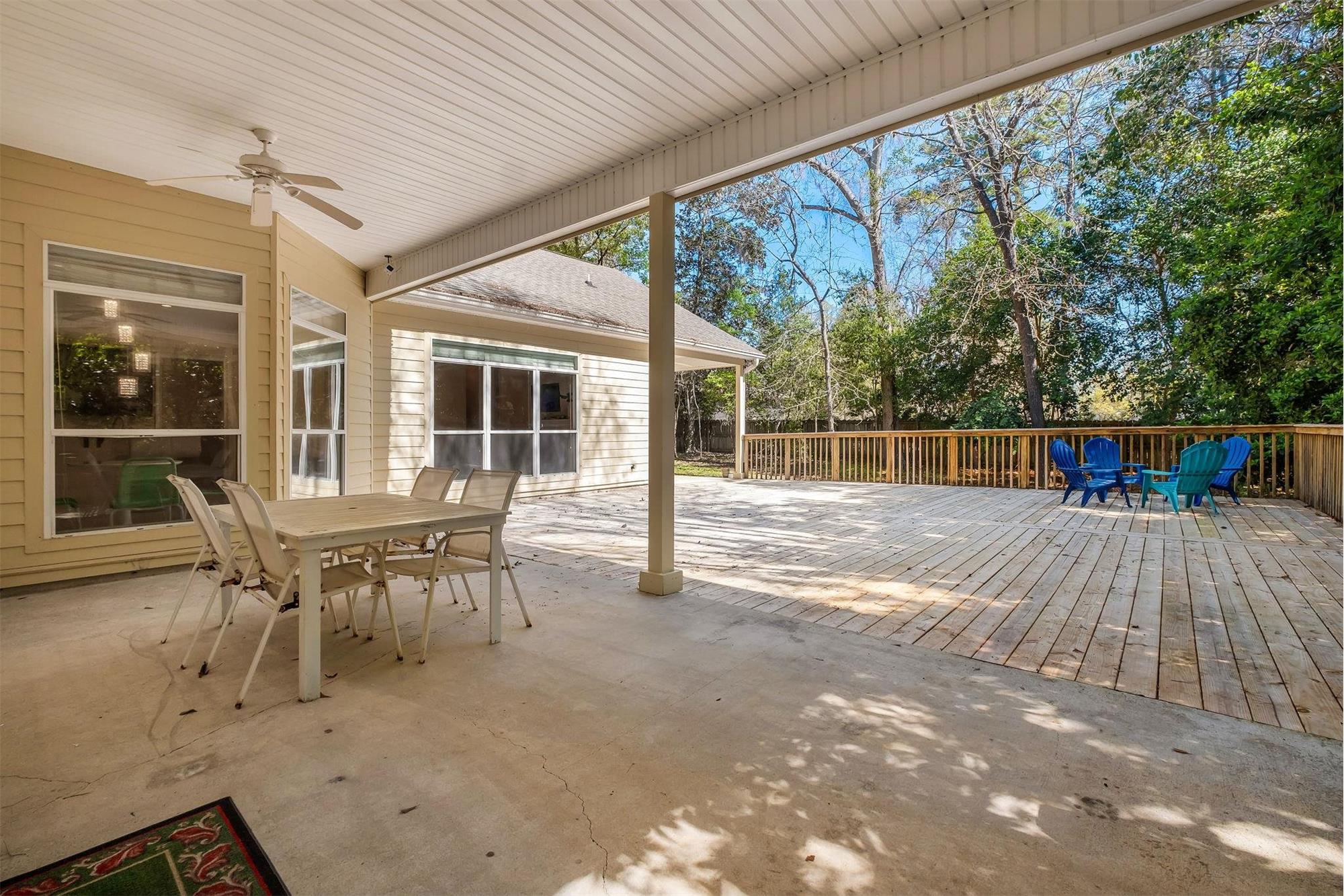 Space, quality, and flexibility define this custom-built 4-bedroom, 3-bath home tucked into one of Tallahassee's most coveted corridors: the Betton area, minutes from Midtown, Tallahassee Memorial Hospital, FSU, and all the dining and shopping along Thomasville Road. Soaring 1214-foot ceilings set the tone from the moment you enter. Hardwood floors flow through the main living areas, with tile in the kitchen and baths. The open-concept layout connects an expansive kitchen featuring granite countertops, stainless appliances, a breakfast nook, bar seating, and a coffee bar directly to a spacious living room with a cozy gas fireplace. A separate formal dining room and additional family room give you the flexibility to live and entertain the way you actually want to. Two owner's suites make this home truly unique. The spacious front primary suite has French door access to the back patio, a walk-in closet, dual sink vanity, jetted soaking tub, and a tiled walk-in shower. The rear owner's suite has its own private access to the deck and a tiled walk-in shower perfect for multi-generational living, a long-term guest, or income potential. Out back, a newly built 30x31 deck creates an entertainer's dream expansive, covered, and anchored by a wet bar area. Seller is offering a new roof with an acceptable offer.