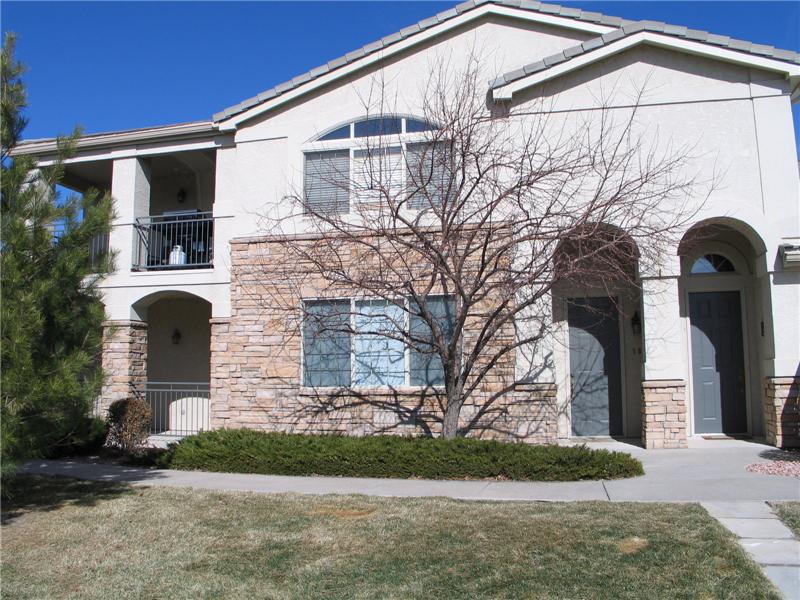 You will love and enjoy this rare ground level condo in desirable Grant Ranch. Amazing amenities, community pool, tennis courts, lakes, lots of walking trails and parks. This unit is a former model home. It has 3 beds and 2 full baths. Large open kitchen with upgraded raised panel maple cabinets, tile countertops and backsplash and a gorgeous corian top island. All appliances are included. * New carpet and paint* Updated fixtures. Oversized tandem garage. The master suite has lots of space and a large bathroom with a custom built closet and built ins. Enjoy the peace and quiet on the covered p