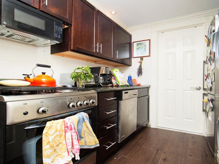Very nice and luxurious apartment located in a well renovated townhouse! Newly renovated luxurious apartment with elegant hardwood flooring, equip with surround sound and intercom systems. Gorgeous open floor plan, living, Dining, kitchen Bar with maple cabinets, Granite countertops and Energy star stainless steel appliances. The bedroom is large and has plenty of space for a king size bed. Bath with marble floor. Fireplace in living room, off street parking, car garage, separate storage space and laundry in partial finished basement. Close to major highway and public transportation. SM
