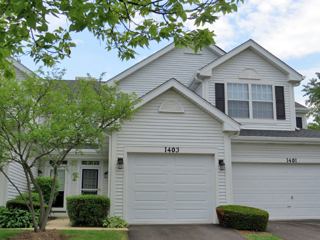 Fabulous east side location for this 2 bedroom 2.1 bathrooms with an attached garage!Bamboo floors! Island kitchen with pantry! Spacious living room! Ceramic floor baths! Vaulted master has his & hers closets & full bath! 2nd floor laundry! Patio has large greenbelt area. No neighbor behind! Walk to parks, bike paths, & fox river! Sold as is! Short sale!