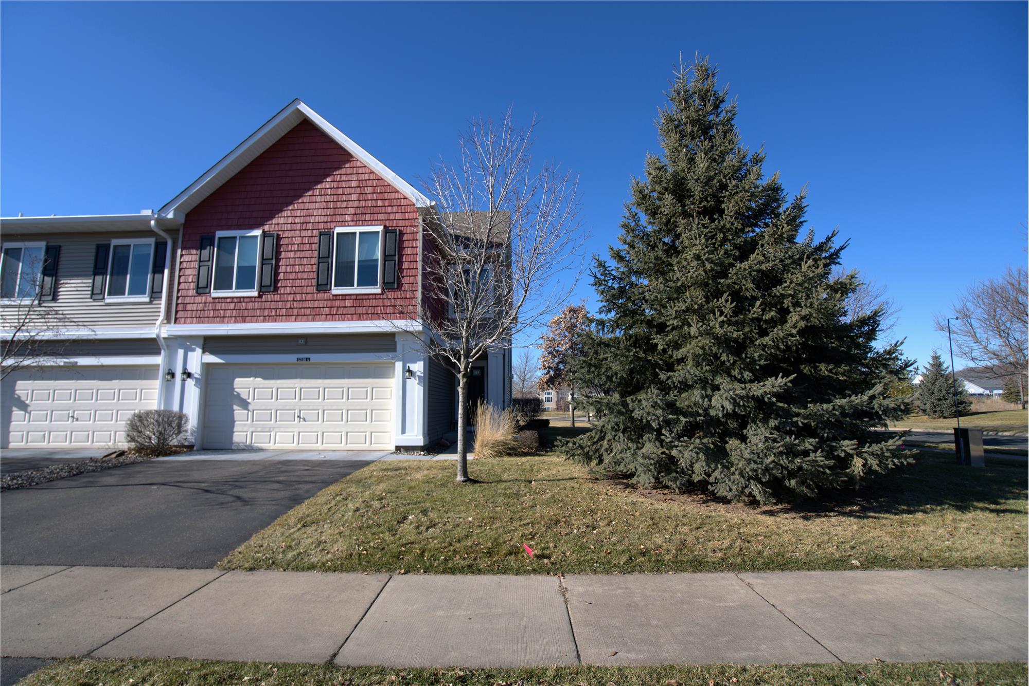 Welcome home to this well-maintained three-bedroom, two-bathroom, multi-level end unit townhome in Blaine in a beautiful development near ponds, walking/biking trails, and The Lakes of Blaine Community! Great curb appeal and a large foyer invite you into the 1,816 finished square foot home. Maple railings on the staircase lead you to the bright and open-concept living/dining/kitchen with high ceilings. Cozy up by the gas-burning fireplace in the spacious living room. The adjoining dining rooms offers walkout access to a maintenance-free deck overlooking the common lot with in-ground sprinklers. The kitchen has a large center island with a granite countertop--perfect for prep space or extra seating when entertaining, maple cabinets, and stainless steel appliances. There are two good-sized bedrooms on the upper level--one of which is the primary suite with a walk-in closet and walk-through access to a full bathroom. The finished lower level includes a family room, 3/4 bathroom, and a third bedroom. Additional amenities of this Blaine townhome for sale include: an attached two-car garage with an asphalt driveway, HOA maintained exterior, snow/lawn care, professional management, and more. All situated in a convenient, friendly neighborhood--just a short distance to access the Chain of Lakes. Contact Chuck Carstensen with Re/Max Results at 612-290-3809 to set up your showing today!