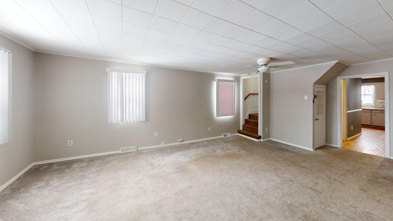 The layout is both practical and inviting, featuring two bedrooms on the main level and an additional bedroom upstairs—perfect for guests, a home office, or a private retreat. The spacious living room offers plenty of room to relax or entertain, with a comfortable flow that makes everyday living easy.
