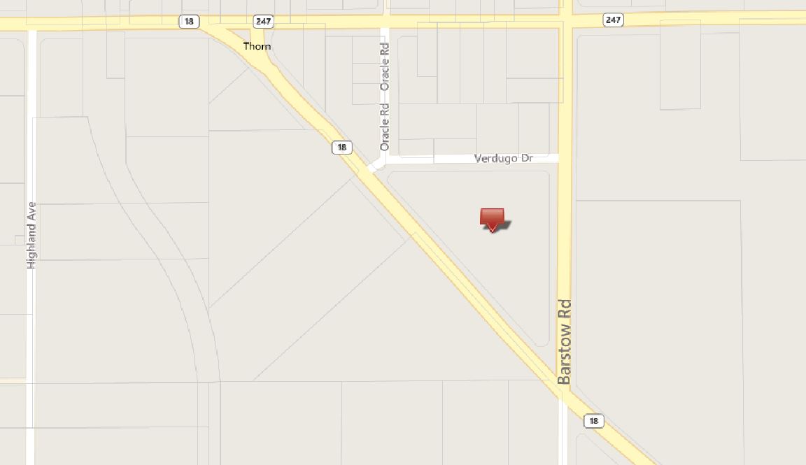 Big commercial lot in heart of town. Over 836' of frontage on Highway 18 and over 621' of frontage on Barstow Rd(Hwy 247). Right across the street from the Lucerne Valley Market with constant flow of customers. This property could be developed in stages as the area grows. Center water company is expanding it's water system and this property will be serviced by water company. Directions: Highway 18, south on Barstow Rd. to subject property right across the street from the Lucerne Valley Market. APN: 0450-371-39 Zoning: CR(Rural Commercial)