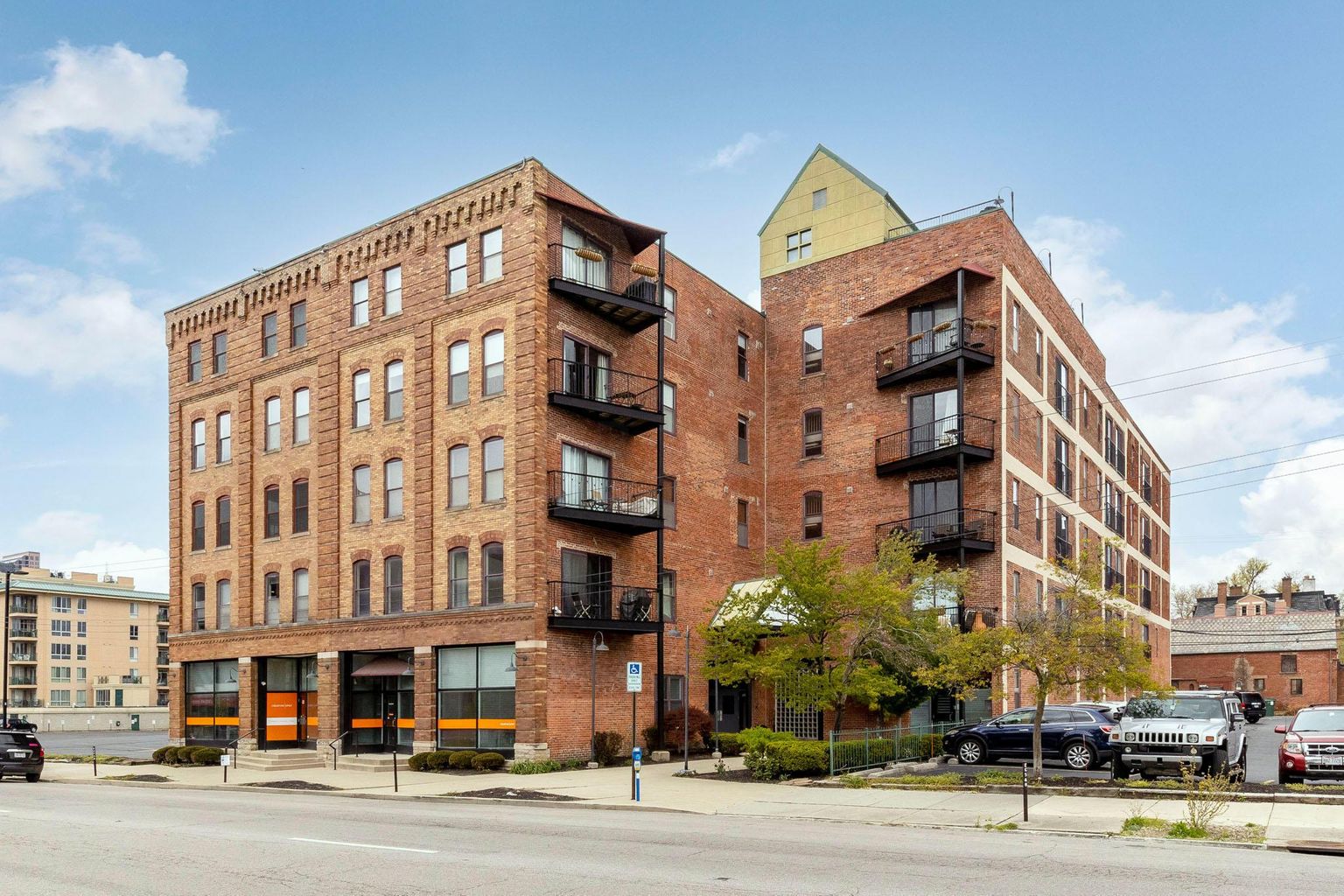 One of the largest condos in conveniently located Rich Street Lofts near Grant Hospital in ''Red Brick District'' -- a vibrant, growing neighborhood in Downtown Columbus. Open concept, exposed brick and sun-filled floor plan with regal size bedroom with Elfa custom organizers in double closet. Abundance of storage and closets. Kitchen includes large pantry and center island, trash compactor and huge pantry. Dedicated parking space. Separate secured storage unit included. Communal entertainment size newly renovated roof top deck with new outdoor grills offers magnificent views of the city.