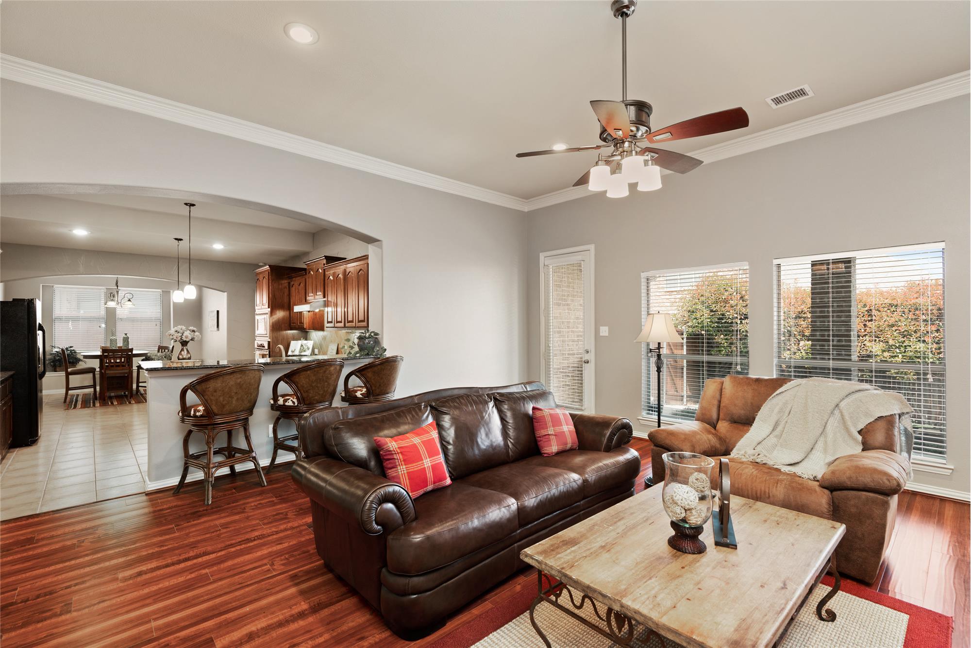Hard to find 1.5 story home with a 3 car garage in Ashwood at Twin Creeks! Gameroom upstairs with full bath could be used as a 5th bedroom. This home is immaculate and ready for move in! Hardwood floors, granite in kitchen, updated interior paint color. Spacious family room with cast stone fireplace. Kitchen is open to family room and includes an island and an abundance of cabinets, gas cooking, stainless appliances. The master is split from other bedrooms. Master bath boasts garden tub, separate shower and large walk in closet. Covered patio in backyard. A short distance from Mary Evans Eleme