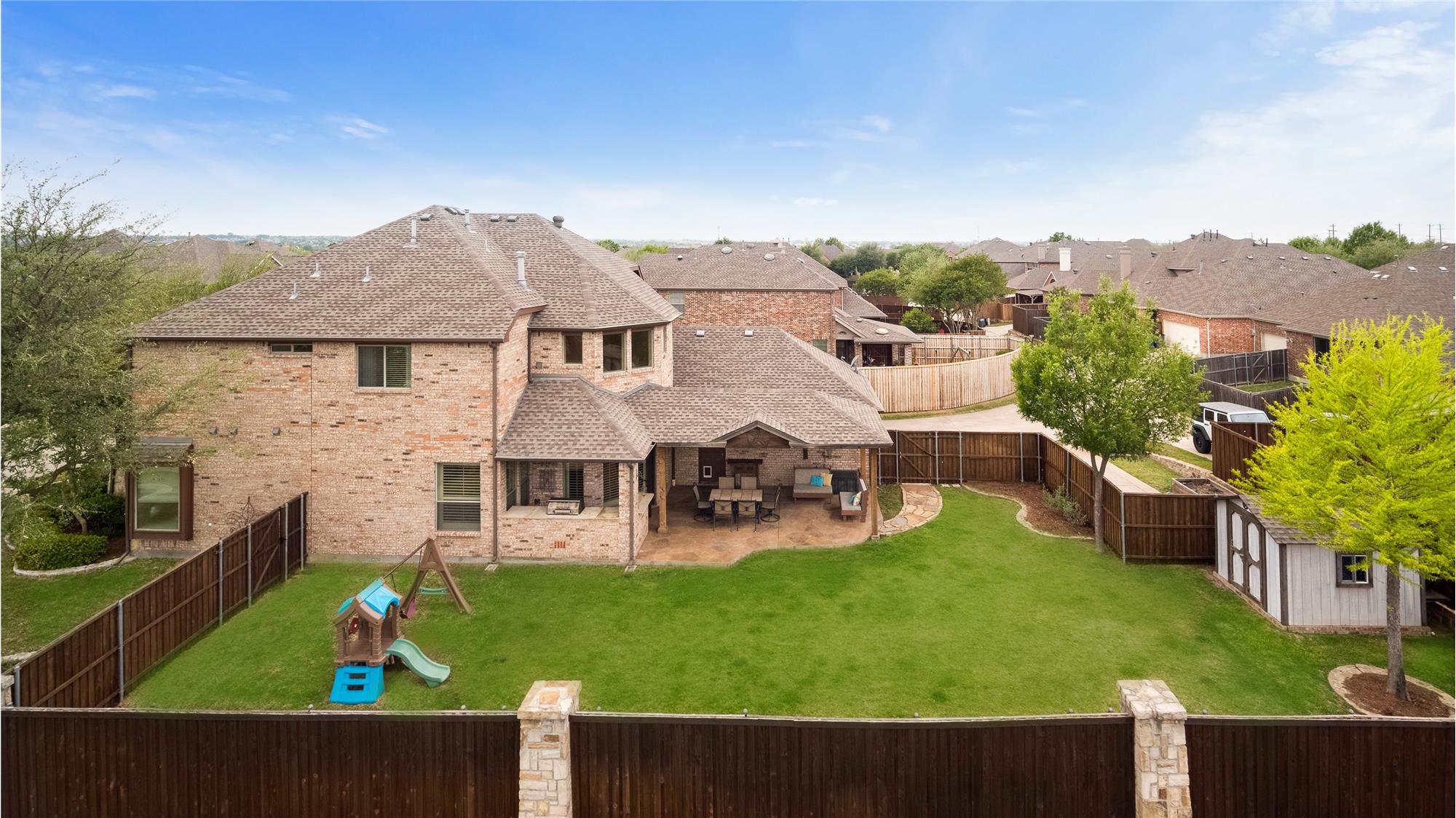 Beautiful two story on oversized corner lot with big backyard and outdoor living in Ashwood in Twin Creeks!Like to entertain outdoors?Don't miss the cedar covered arbor with outdoor kitchen with grill and patterned concrete patio. Large private yard includes storage building. Beautifully updated home features two living areas, four bedrooms and study. Two story ceiling in family room with stone fireplace, plantation shutters. Kitchen boasts granite, breakfast bar and an abundance of cabainets. Master is large and downstairs, split from other bedrooms. Look at all of the storage in the garage!