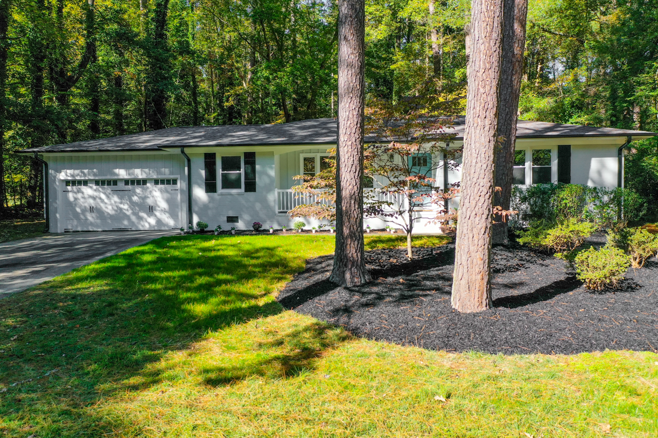 Beautiful brick ranch on .46 acre lot in Hope Valley. Almost every sq. ft. of this home was renovated. Multiple walls were removed to create an open and spacious floor plan. New wide plank hardwood floors installed throughout. All windows, doors, roof, gutters, paint and garage door are brand new. Kitchen offers new stainless steel appliances with gas range. Shaker white cabinets with soft close drawers compliment gorgeous tile backsplash with ORB hardware and farmhouse sink. Quartz countertops extend past the range to create an inviting seating area. Master retreat offers a huge walk in closet with custom built barndoors with gorgeous shower and double vanity. Garage offers storage as well as a lower level wine cellar/workshop. Landscaping was redone with all new grass planted with a gorgeous tie wall between two large concrete patios. Backyard is entirely fenced. Easy access to Third Fork Creek Trail for walking, jogging and biking. Jordan HS District. Centrally located close to UNC, Duke and DT Durham.