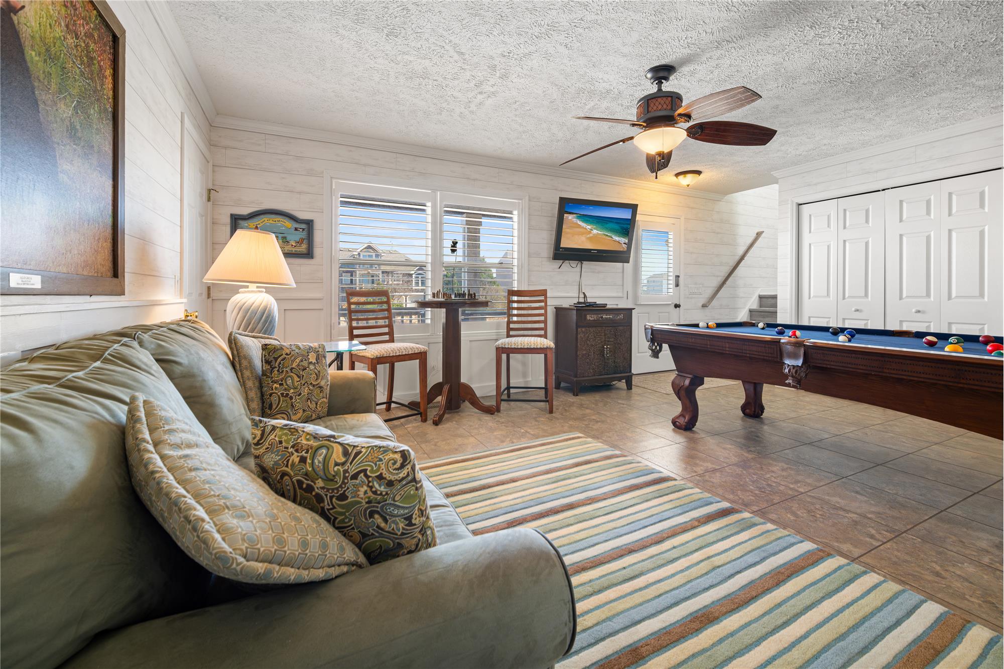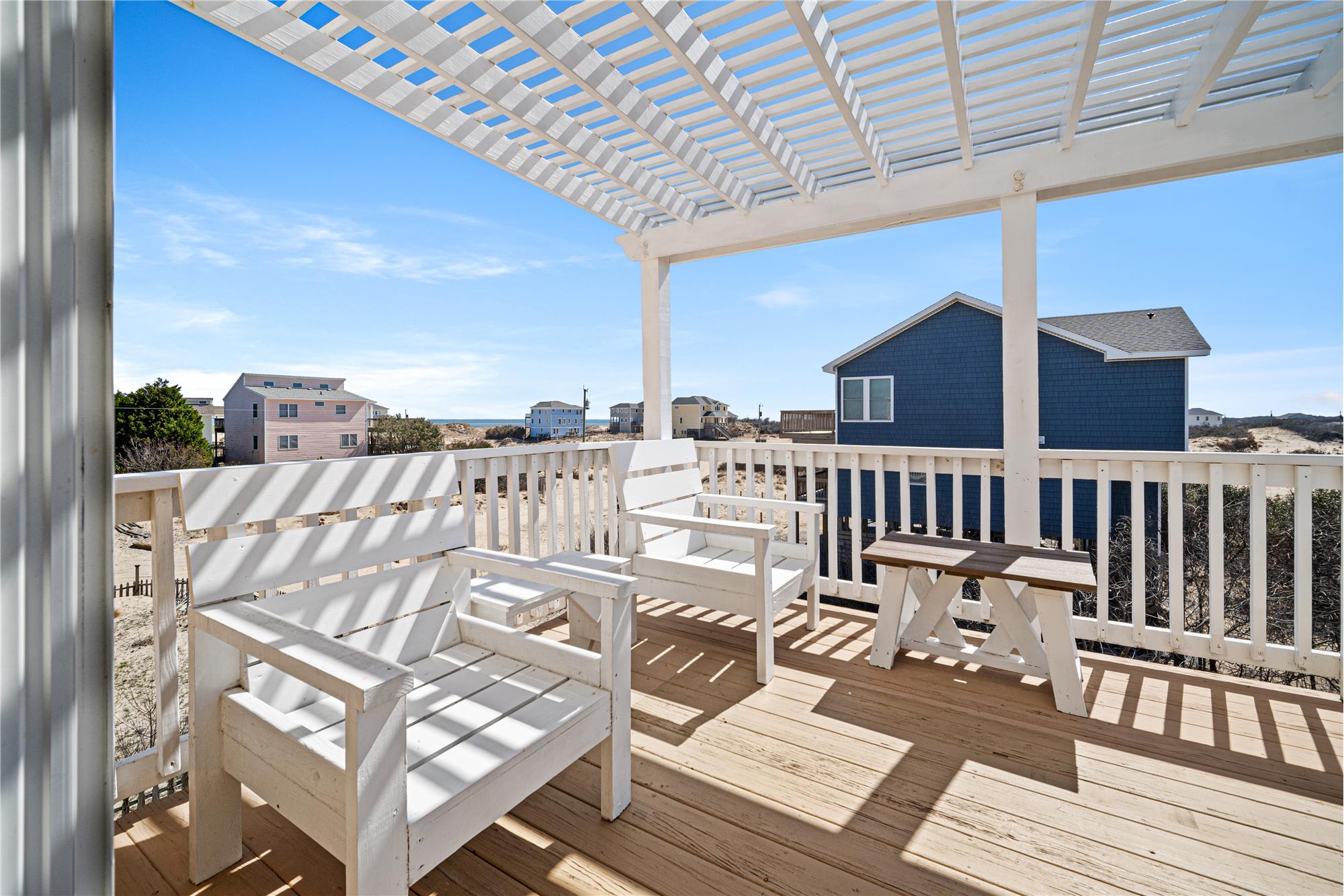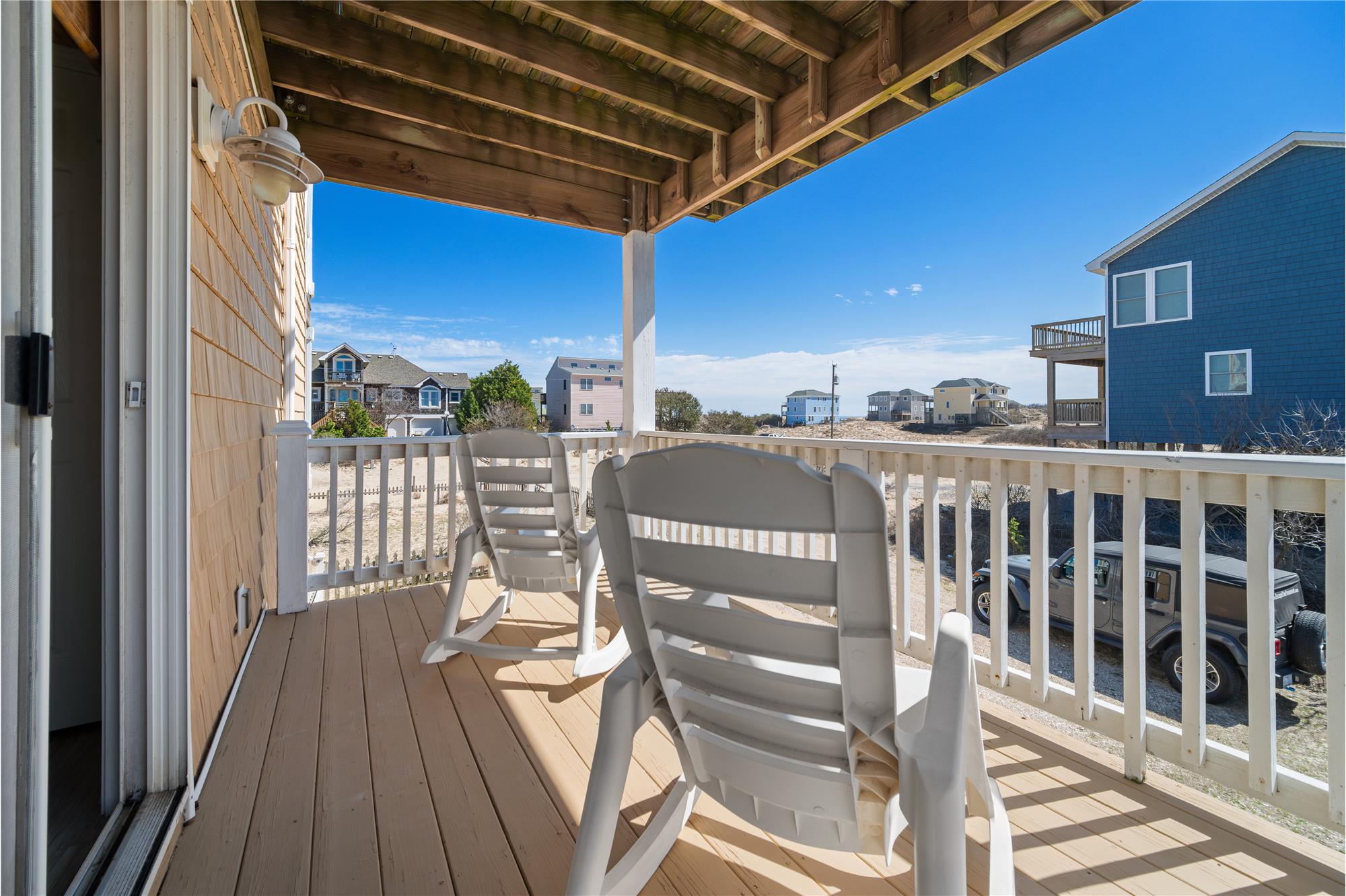 1634 Sandpiper Rd offers a comfortable coastal retreat in the quiet setting of Swan Beach, where the rhythm of the 4x4 area sets the pace for everyday living. This 4th row home, built in 2007 and located in the X flood zone, features a thoughtful reverse floor plan that brings the main living area to the upper level to capture natural light and steady ocean breezes. The great room opens to eastward-facing decks and includes space for gathering, dining, and relaxing after a day on the beach staring out at the ocean. A game room on the mid-level adds a casual spot for downtime, giving the home an easy, livable flow. With 3 bedrooms and 3 bathrooms, each bedroom has its own connecting bath, and two bedrooms offer ocean views, creating a comfortable layout for family and guests. Outdoor living is central to the experience here. Multiple decks provide places to take in the sunrise, watch pelicans glide along the shoreline, or enjoy the quiet that comes with being surrounded by open dunes and maritime vegetation. The Corolla Wild Horses are frequent visitors, moving through the area much as they have for generations. A 10-foot easement along the northern boundary adds a bit more separation from the neighboring property, enhancing the sense of space and privacy. With 4x4 access required, the neighborhood maintains a sense of privacy and separation from the busier parts of the Outer Banks, while still keeping you close to the beach and the natural landscape that defines Carova. Whether used as a personal getaway or a relaxed coastal home base, this property offers a comfortable blend of function, setting, and the off-the-beaten-path lifestyle that makes Carova unique.