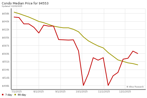 The chart below shows the combined 7 days and 90 days median price trends for zip code