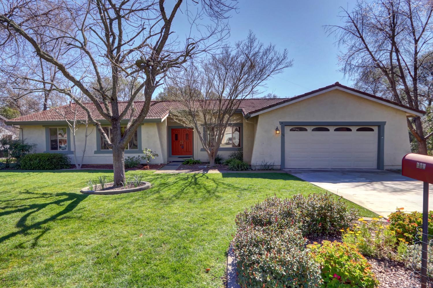 Lovely American River Canyon Estates single story set on a quiet half acre park-like cul-de-sac lot. Spacious flowing floorplan perfect for special entertaining. The family room has elegant hardwood flooring, warm and inviting fireplace with tile surround and gas starter, glass slider door to the rear yard and open lines of sight to the kitchen which offers ample counter and cabinet space, tiled counters and dining bar perfect for the kids and a large breakfast nook with picture windows looking out to the rear yard on nearly a 1/2 acre private park-like lot.