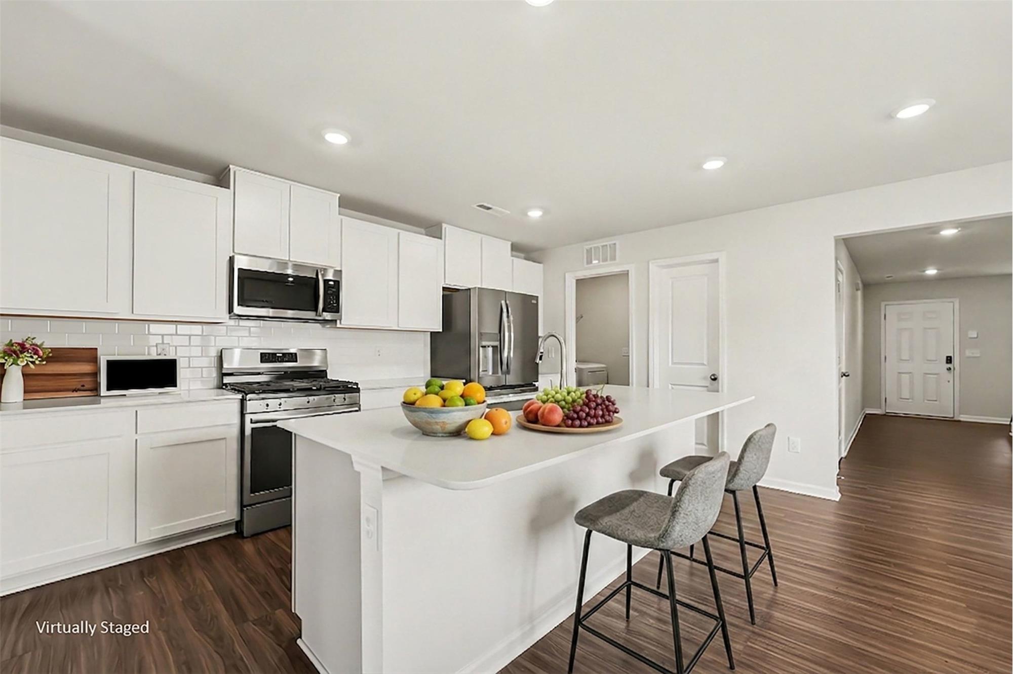 Why wait for a custom build when perfection is ready now? This lovely home recently built in 2024 is situated on a corner homesite, this 5-bedroom residence offers the rare, highly coveted primary suite on the main level. Step inside to an expansive open concept design where the chef-inspired kitchen featuring Shaker cabinetry, a massive entertaining island, subway tile backsplash, white granite counter tops and a deep walk-in pantry that flows effortlessly into the family room. The main floor is rounded out with a tucked-away powder room for guests. Venture upstairs to discover a large loft that truly defines "space to spread out." Whether you need a cinema room, home gym, or play zone, this area will blow you away. With four additional oversized bedrooms upstairs, there is room for everyone. Note, refrigerator, washer and dryer convey as well as existing 10 year structural warranty transfers until 9/26/2034!