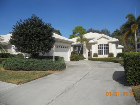 Welcome to Venice Golf & Country Club. This 2000SqFt home welcomes you with mature landscaping and French double door entry. Once inside, you will love the bright and airy atmosphere provided by the many windows throughout. This home features new carpet and new paint. The floor plan flows nicely with spacious eat in kitchen in addition to a formal dining area and family room with arched window design. The master suite does not disappoint with garden tub, separate walk in shower, dual oversized vanities and an additional make-up vanity. All this, plus oversized lanai and oversized garage with golf cart parking, what a deal! Come take a look for yourself. Golf or social membership to VG&CC required. This is a Fannie Mae HomePath property. Purchase this property for as little as 3% down. This property is approved for HomePath Mortgage Financing and HomePath Renovation Mortgage Financing.