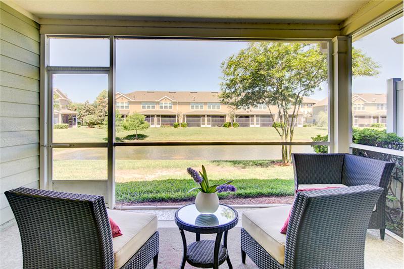 MLS# 770464 Pulte Built San Carlo floor plan offers a gourmet kitchen, over-sized living and dining room, owner's suite with large walk in closet and vaulted ceilings throughout the upstairs. Stainless appliances, solid surface counters and counter height breakfast bar. The screened lanai is nestled upon a backdrop of nature preserve and is just steps from the clubhouse, pool, and fitness center. One car garage with additional keypad entry. keypad entry. Perfect for entertaining while enjoying a maintenance free lifestyle!