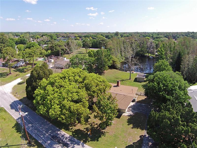 Get away from the bustle in this perfect lakefront retreat. Near to everything yet set back on a quiet road and set within the shade of welcoming oak trees. This spacious split plan home offers a lakefront life style and privacy on close to an acre wooded lot. Large kitchen with pass through which services into the comfortable family room with wood burning fireplace and wonderful water view. Screened enclosed porch overlooks the large backyard and also has wonderful lake views. Master bedroom has plenty of closet space and private master bath. Both guest bedrooms are gracious in size and are served by a full guest bathroom. Full two car oversized garage. In addition to the garage there is a large free standing shed in the backyard. Plenty of room for expansion. Come and experience the Florida charm of this perfect lakefront getaway! NO FLOOD INSURANCE REQUIRED!