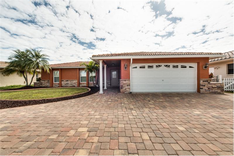 Come enjoy the warm Florida tropical waterfront lifestyle in this charming updated pool home with deep and quick open gulf access. Bicycle to the turquoise waters of the private sandy beach overlooking beautiful Anclote Key! The beauty of this home is evident as you drive up and are greeted by its lush tropical landscaping, fine craftsmanship installed pavers and flagstone accents, stately columns, recent 50-year tiled roof, and natural wood ceiling as you approach the entryway. Entering into the comfortable Living Room you'll appreciate the quality tile flooring, plaster ceilings, and designer tones. The open and updated Kitchen boasts quality appliances, wonderful water views, and a gracious breakfast bar serving into the Family Room which includes a fireplace and glass sliders leading out to the pool area. The spacious Master Bedroom boasts a spacious walk-in closet and a waterfront and pool view via glass sliders. The private Master Bathroom has a separate and updated vanity area and spacious shower stall. Both Guest Bedrooms are gracious in size with the waterfront Guest having a private door to the pool and waterfront area. Both are served by an updated full Guest Bathroom. What an amazing pool and deck! Bathe in the full sun along the deep and wide canal. The convenient boatlift and floating dock will be your starting point to endless adventures on the calm gulf waters and nearby tropical islands! Full two car garage and plenty of closets and storage areas throughout this home. Many recent upgrades including all new energy efficient windows and sliding doors! Come live the worry-free and affordable waterfront lifestyle today!