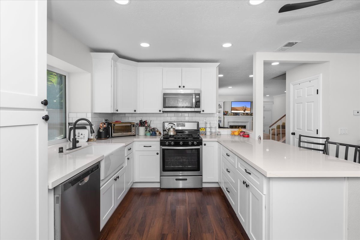 No HOA fees, No Mello-Roos, this twinhome is located on a cul-de-sac street. Beautifully remodeled kitchen, reconfigured for improved flow and function. White shaker style cabinetry, farmhouse sink, white/grey countertops and much more to love. This plan features all bedrooms upstairs and large dining area just off the kitchen. The lower level has windows replaced with dual-pane windows and replaced sliding patio doors, vinyl flooring, and has built-ins along the fireplace wall in the living room. Enjoy the spacious backyard, ready for your imagination and personal touch. Only minutes away from distinguished schools, close to Plaza Carmel Shopping center and One Paso.