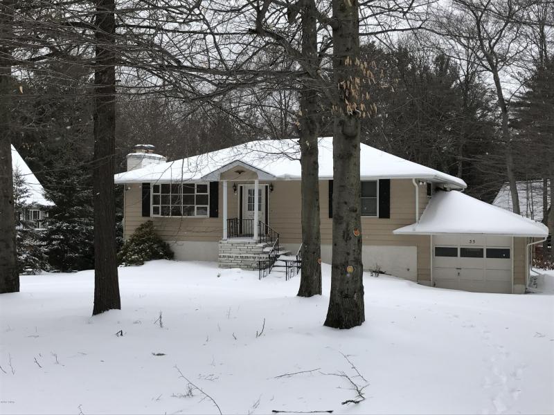 Light and bright ranch in full amenity community on Lake Wallenpaupack. Inside you will find a nice size, bright kitchen with adjoining dining area, a large living room with a wood burning fireplace, a HUGE family room with a second fireplace, three bedrooms and two baths. Outside, you will love the large screened porch and adjoining deck,perfect for summer living. A one car garage is great for keeping your car cool in the summer and snow free in the winter...or use it for your lake toys or golf cart. Yes, you can ride a golf cart to the pools and lakes - how awesome is that! Make an appointme